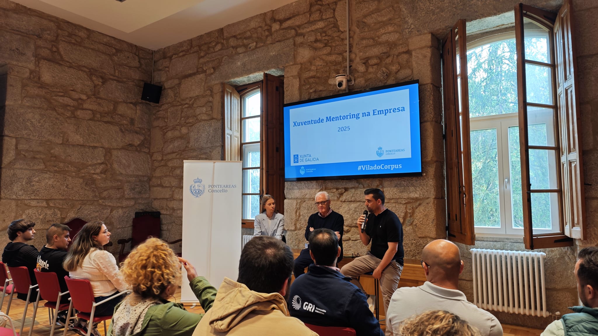 A directora xeral de Xuventude, Lara Meneses, mantivo hoxe unha xuntanza coa ducia de mozos e mozas que comezan a súa primeira experiencia no programa Xuventude Mentoring na Empresa no concello de Ponteareas. Trátase dunha iniciativa da Xunta de Galicia que busca favorecer a inserción laboral da mocidade e na que, tal e como resaltou Lara Meneses, é “fundamental contar coa implicación de entidades e organismos como os concellos” para ofrecer estadías formativas á xuventude.