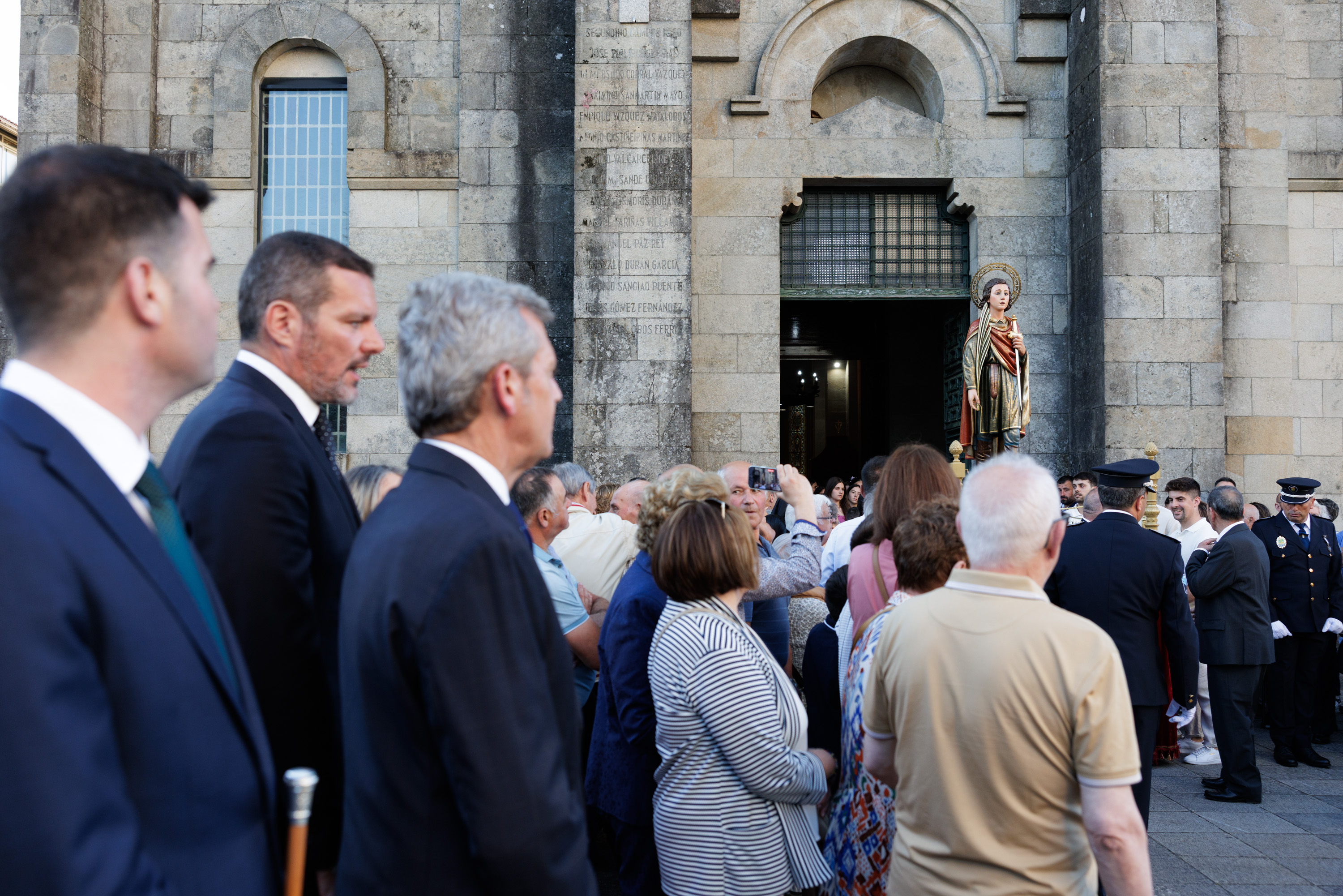 O presidente da Xunta, Alfonso Rueda, acompañado do conselleiro de Cultura, Lingua e Xuventude, José López Campos, asistiu á procesión na honra de San Paio, na igrexa parroquial da Estrada.
