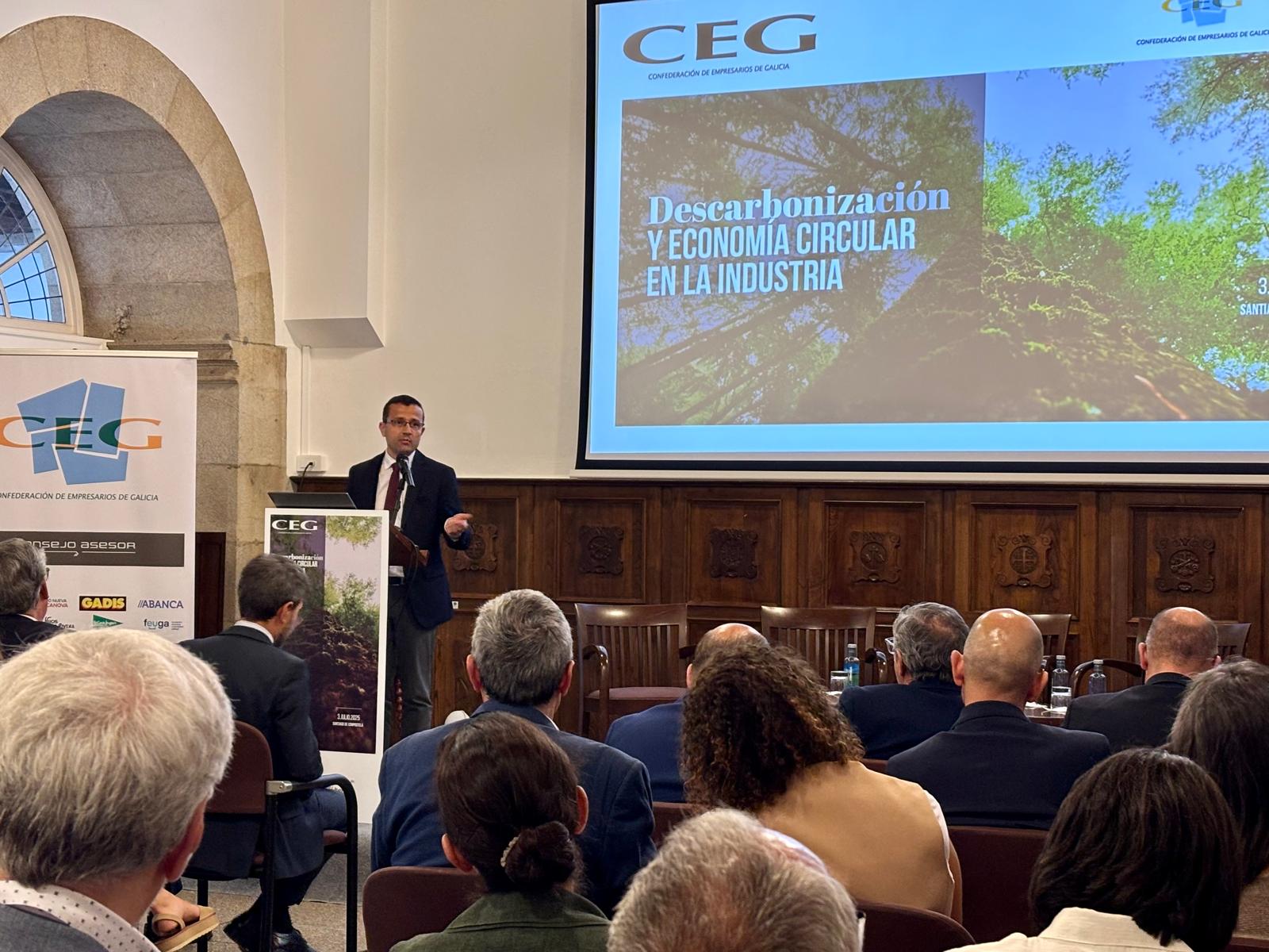 O secretario xeral de Industria e Desenvolvemento Enerxético, Nicolás Vázquez, interveu hoxe na inauguración da xornada Descarbonización e economía circular na industria, organizada pola Confederación de Empresarios de Galicia (CEG)