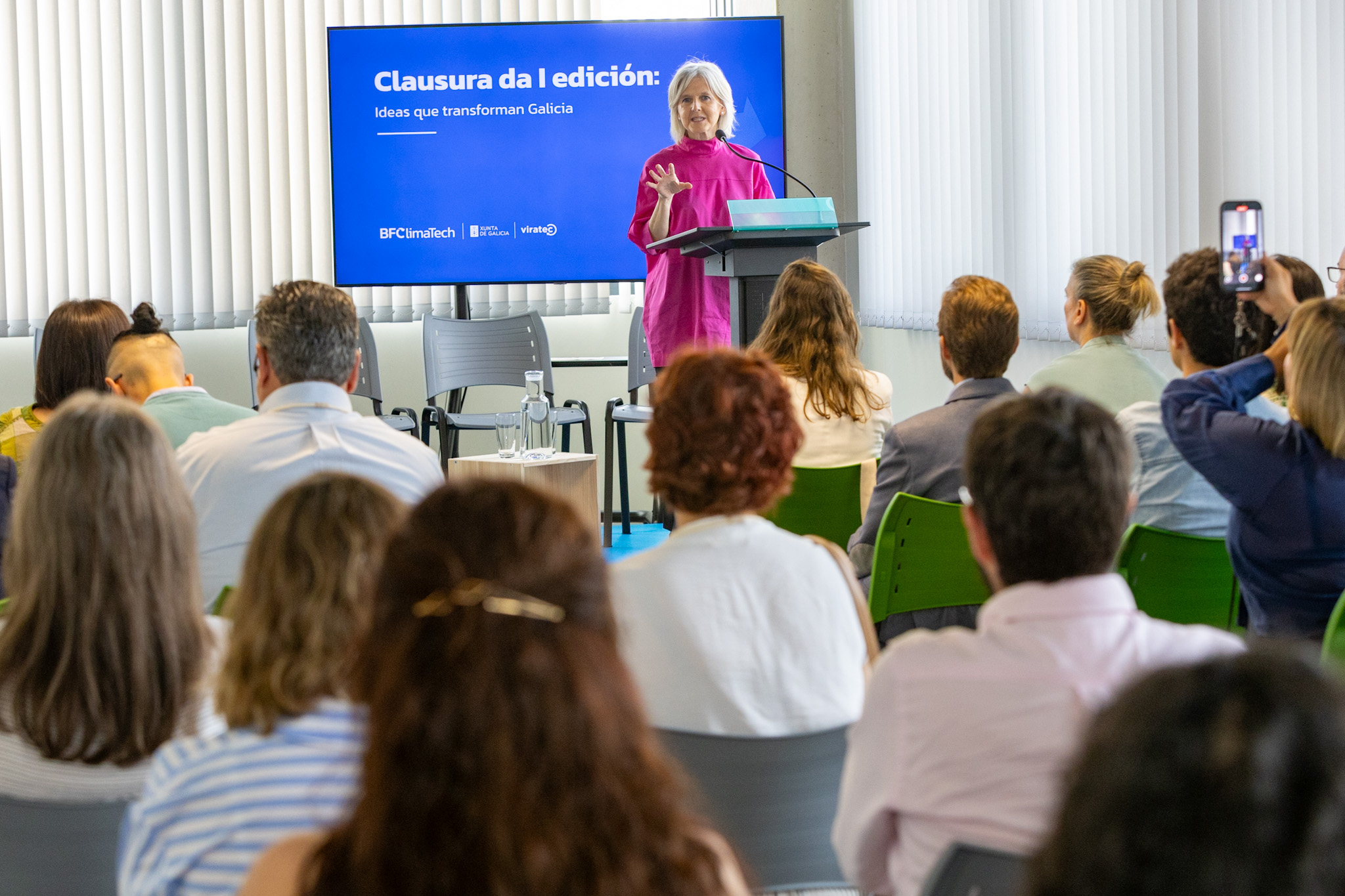 A directora do Igape, Covadonga Toca, participou hoxe na clausura da primeira edición da aceleradora BF ClimaTech, impulsada pola Xunta de Galicia en colaboración co clúster Viratec, e que se salda coa creación de catro novas empresas verdes e máis de 300 contactos comerciais.