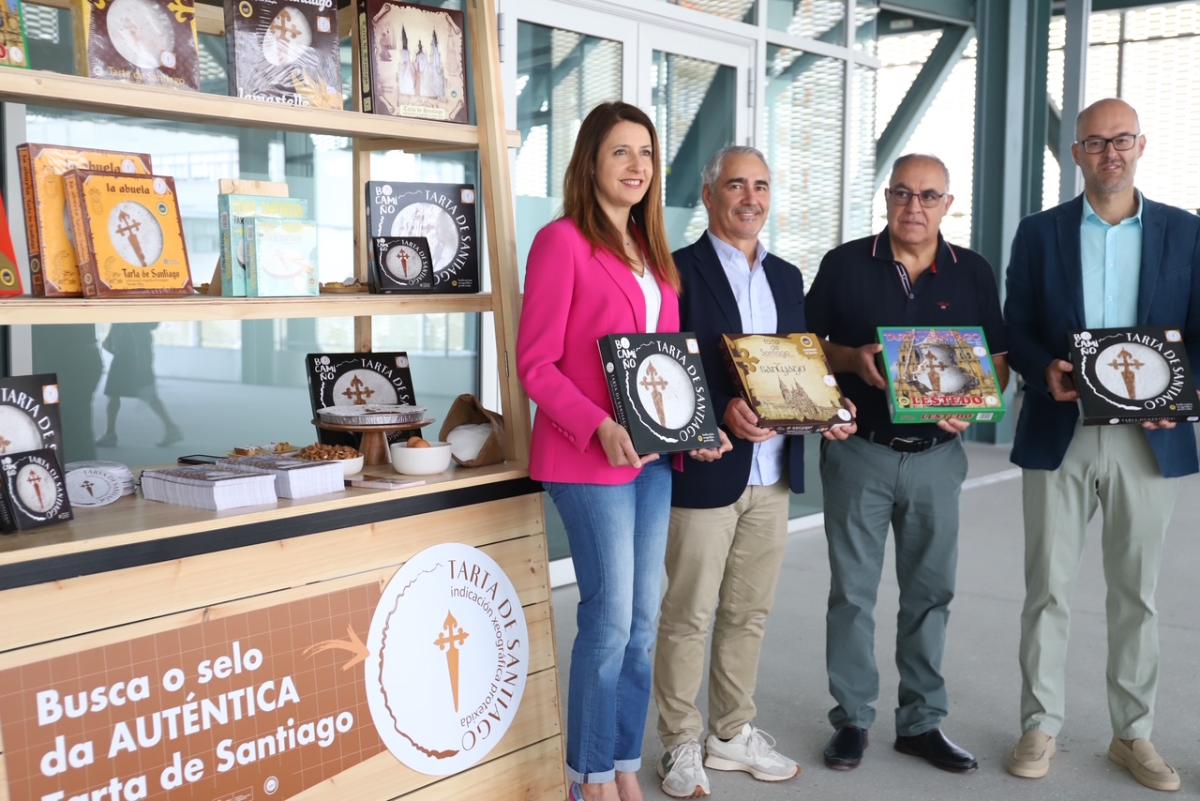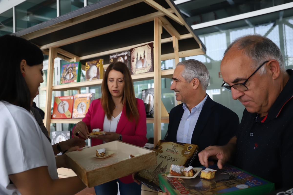 La conselleira del Medio Rural, María José Gómez, acompañada por el director de la Agencia Gallega de Calidad Alimentaria, Martín Alemparte, participó en un acto promocional de la Indicación Geográfica Protegida (IXP) Tarta de Santiago celebrado en la Estación Intermodal de Santiago de Compostela. En el encuentro también estuvieron presentes el presidente de la IXP, Joaquín Rodríguez, y varios elaboradores inscritos en el sello, que acudieron para dar visibilidad al producto.