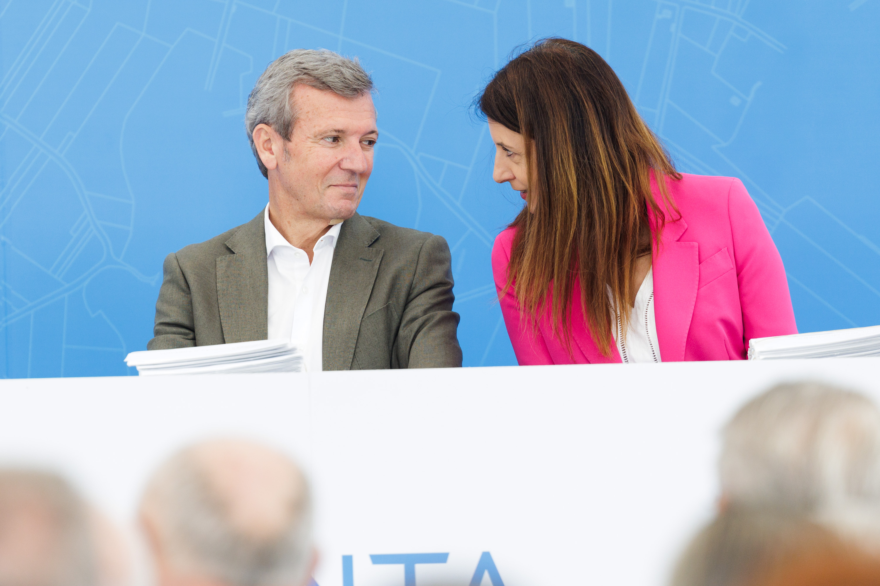 O presidente da Xunta, Alfonso Rueda, acompañado da conselleira de Medio Rural, María José Gómez, destacou hoxe o impacto da concentración parcelaria como motor estratéxico do desenvolvemento rural galego.