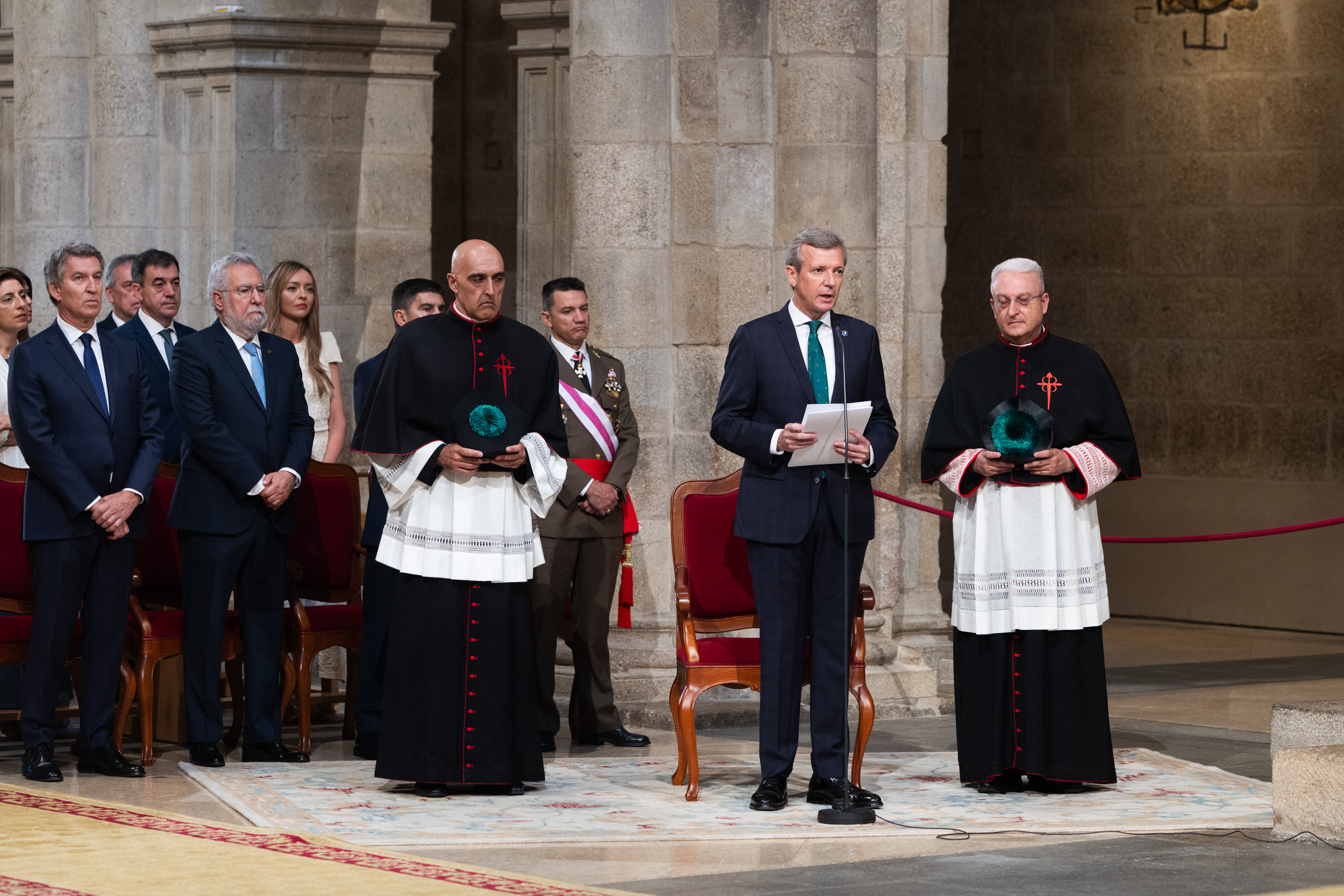 Para a Galicia dos nosos días facemos votos, Apóstolo Santiago, para seguir construíndo –coas achegas de todas e todos- unha Comunidade aberta, plural, solidaria, que o sexa cada día máis, afastada de calquera experimento que queira poñer en risco os avances logrados neste case medio século de democracia e autonomía.