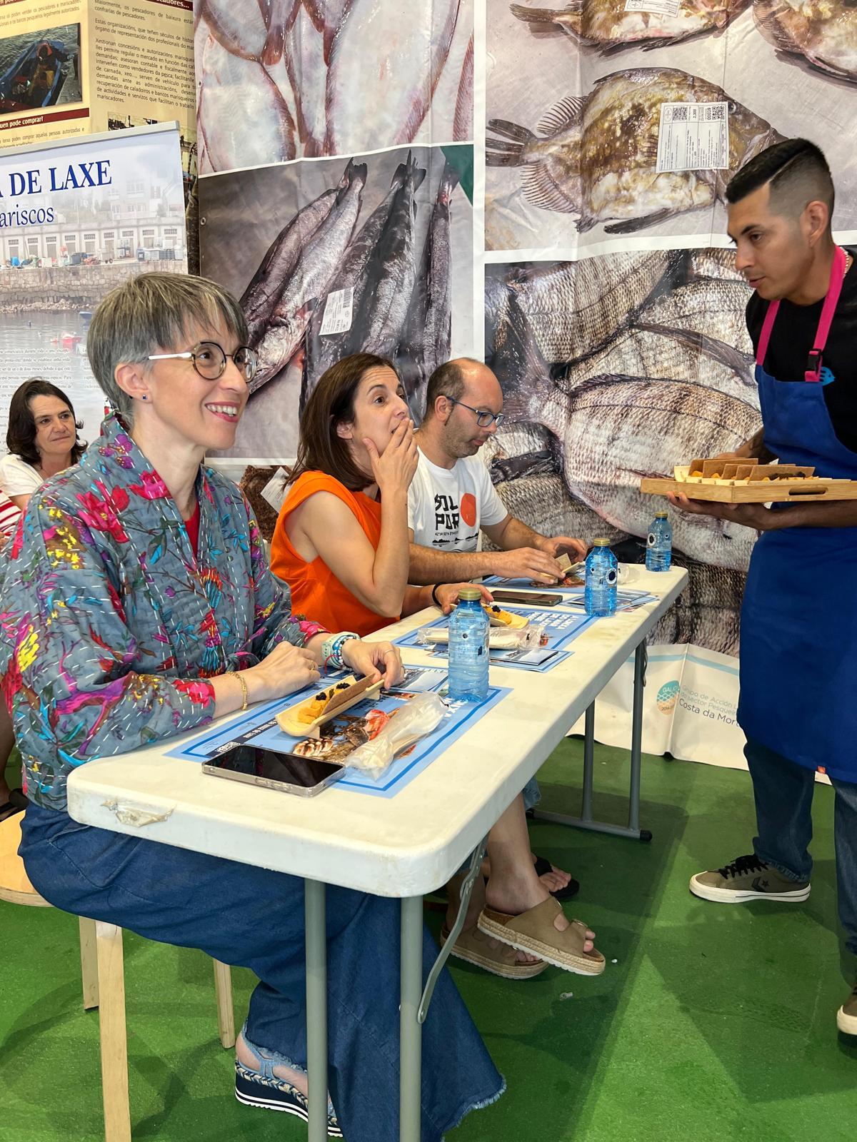 La lonja de Laxe vivió este domingo el último día de las IV jornadas de pesca artesanal con el nombramiento de los Embajadores de los Pescados y Mariscos como acto central. El encuentro contó con la asistencia de la directora general de Desarrollo Pesquero, Ángeles V. Suárez, quien, en nombre de la Consellería do Mar, puso en valor el extraordinario potencial alimenticio que ofrece el litoral gallego, pues, de la mano de un sector comprometido con la sostenibilidad, supone una fuente generadora de productos de altísima calidad y representa a un de los pilares más importantes de la economía gallega.
