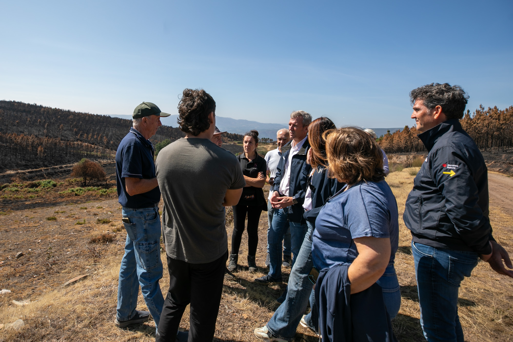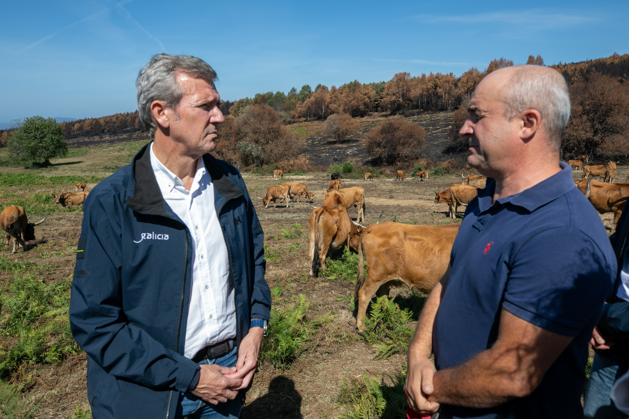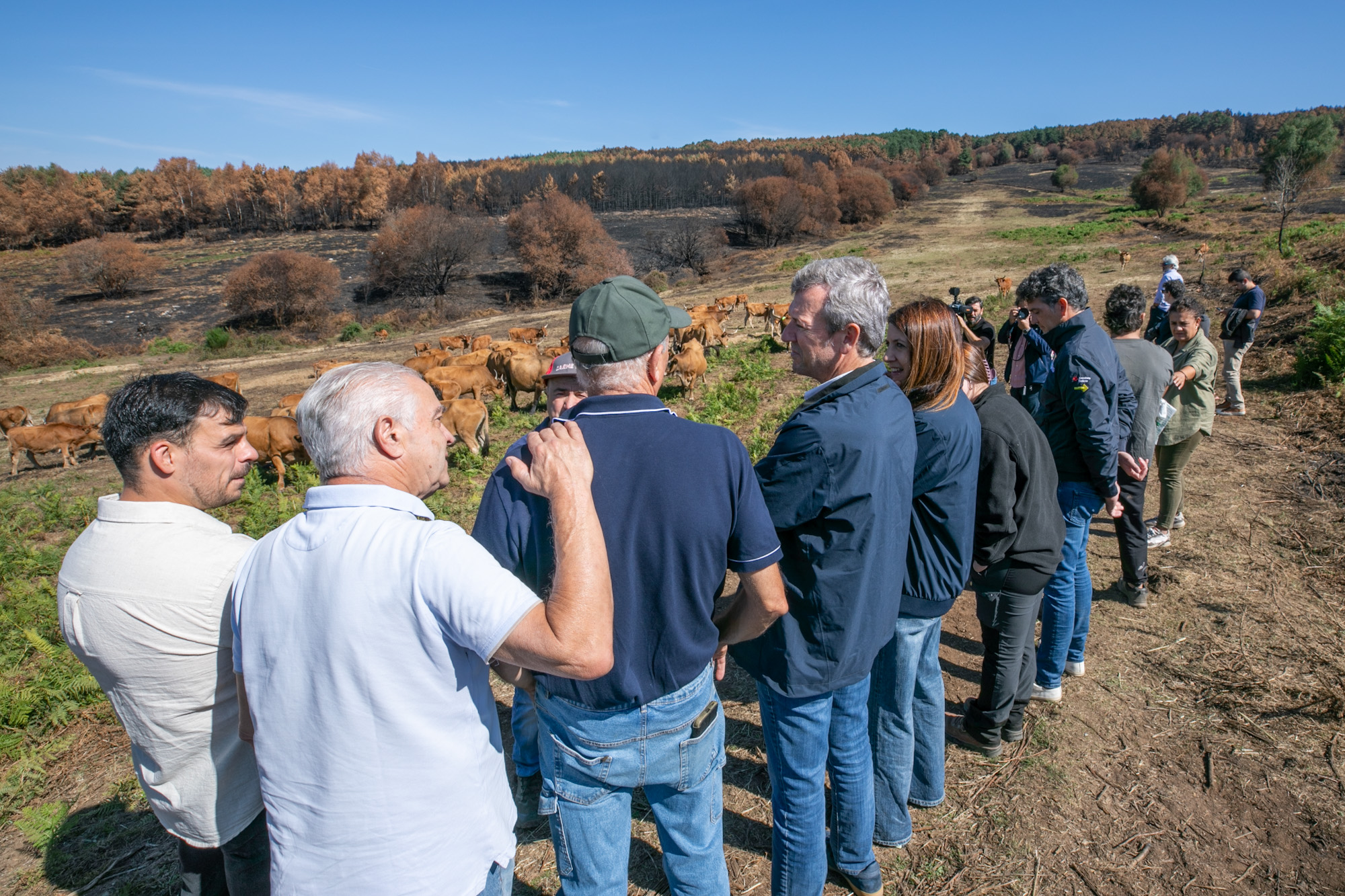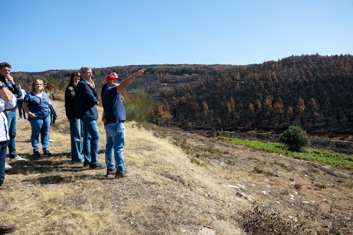 El presidente recordó que esta fue una de las zonas afectadas por los incendios del pasado mes de agosto, concretamente por el fuego que se inició en Larouco y que calcinó más de 30.000 hectáreas, y que en el caso de esta explotación provocaron importantes pérdidas en pastos y forraje. La Xunta habilitó de inmediato un mecanismo de urgencia para garantizar alimento al ganado, que permitió repartir más de 93 toneladas de forraje en 15 ayuntamientos, entre ellas, pacas, rollos y tráileres de hierba seca y paja.