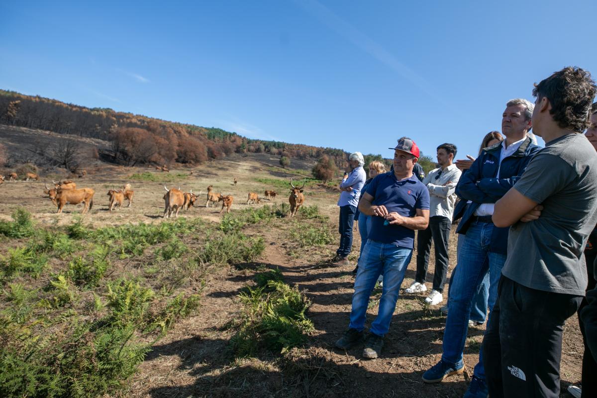 El titular del Gobierno gallego aprovechó la visita para poner en valor a ganadería en extensivo como modelo sostenible, con futuro y clave para la protección del territorio frente a los incendios, y recordó que los pasteros actúan como barreras naturales. En este sentido, el Plan de Pastos de Galicia lleva movilizadas desde 2020 más de 1.930 hectáreas en 80 pasteros, con una inversión de cerca de 10,5 millones de euros, a las que este año se suman otras 519 hectáreas en 26 nuevos pastizales, con un presupuesto adicional de 4 millones: "Hay que vivir y hay que explotar económicamente. Es una buena ocasión para que las cosas que pueden funcionar mejor, lo hagan", remarcó.