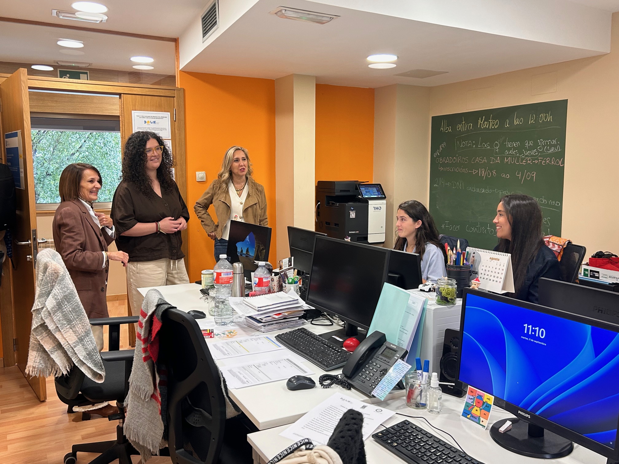 La delegada territorial de la Xunta en Ferrol, Martina Aneiros, y la directora general de Promoción de la Igualdad, María Quintiana, visitaron hoy en el local de la asociación Teima Down Ferrol a las participantes del programa Mulleres Teimudas que cuenta con el apoyo económico de la Consellería de Política Social e Igualdade.