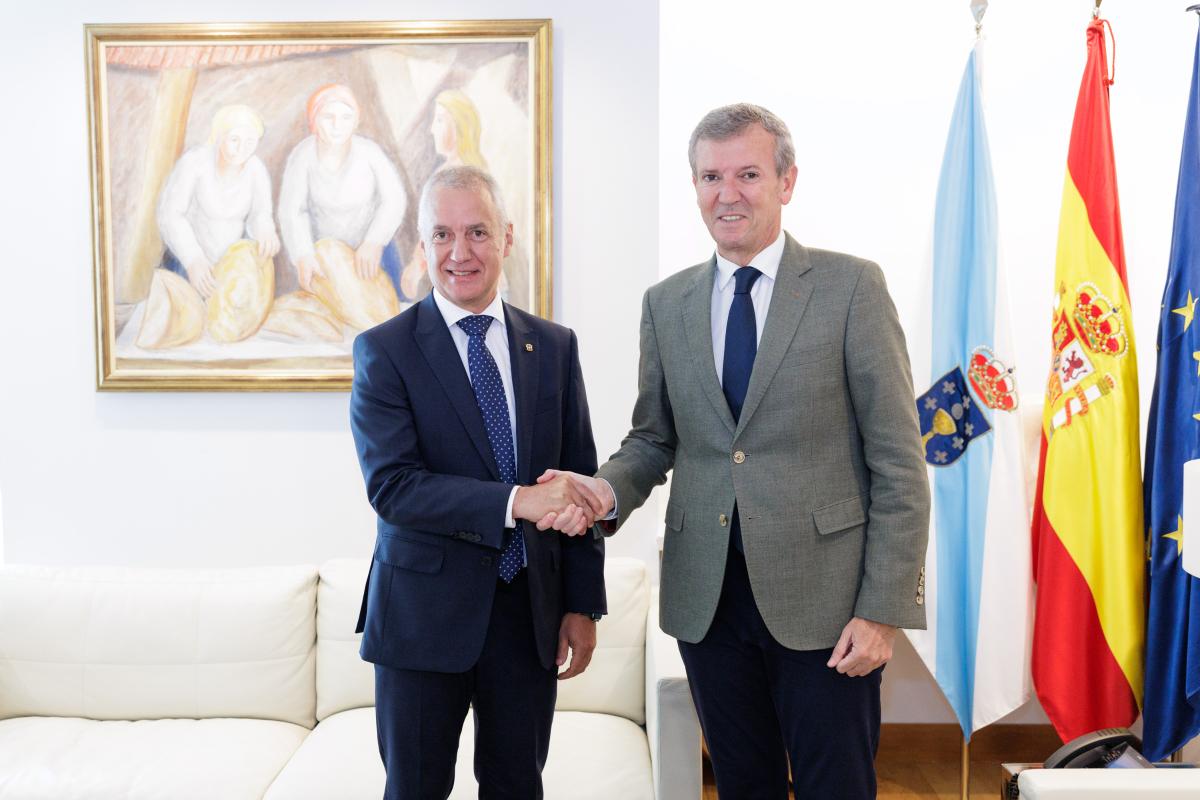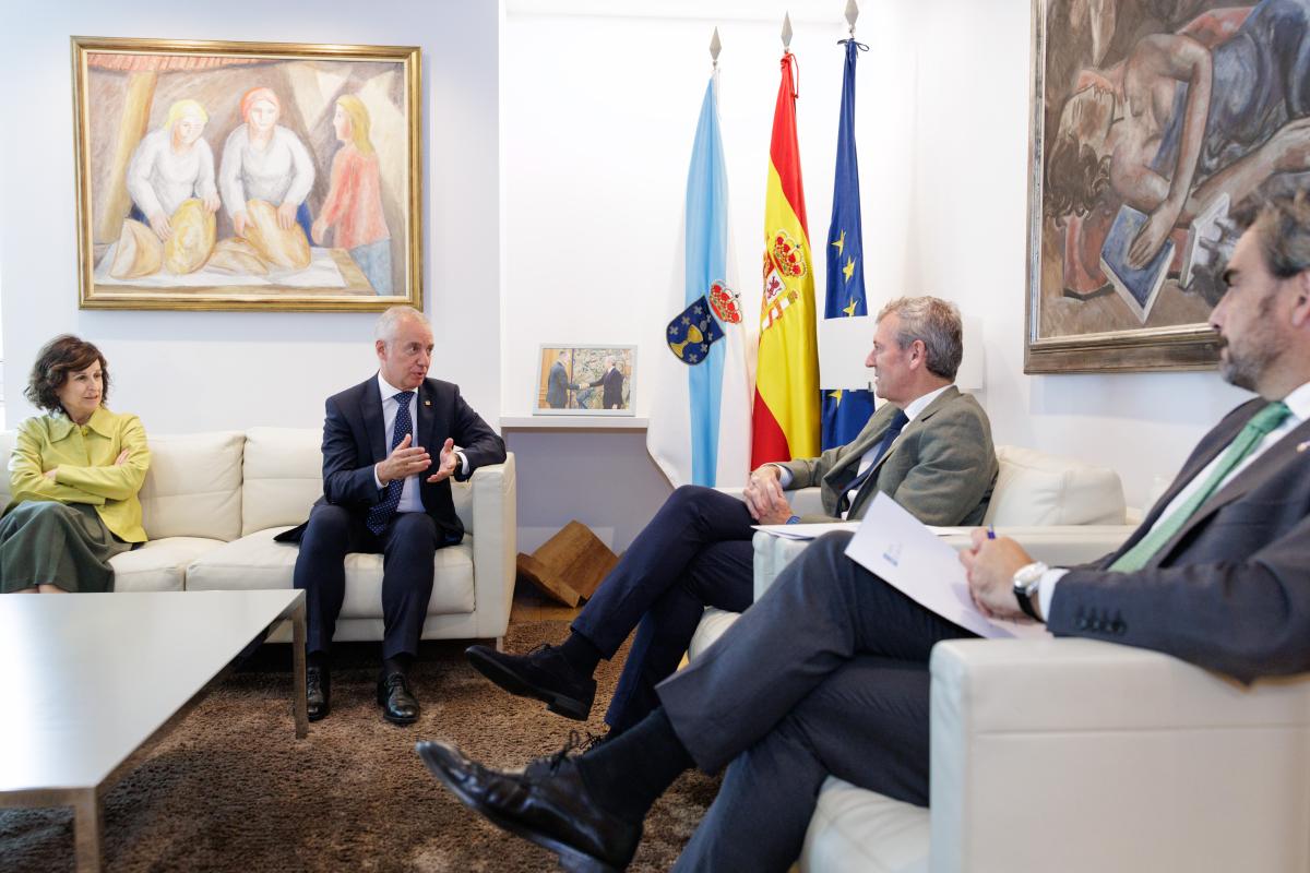 Rueda, que estuvo acompañado por el conselleiro de Presidencia, Xustiza e Deportes, Diego Calvo, conoció las líneas estratégicas de la entidad presidida por el exlehendakari, que fue constituida el pasado mes de abril. En el encuentro, que se enmarca en la ronda de contactos que se están promoviendo desde la fundación para darla a conocer, participó también la directora general de la Fundación eAtlantic, Marian Elorza.