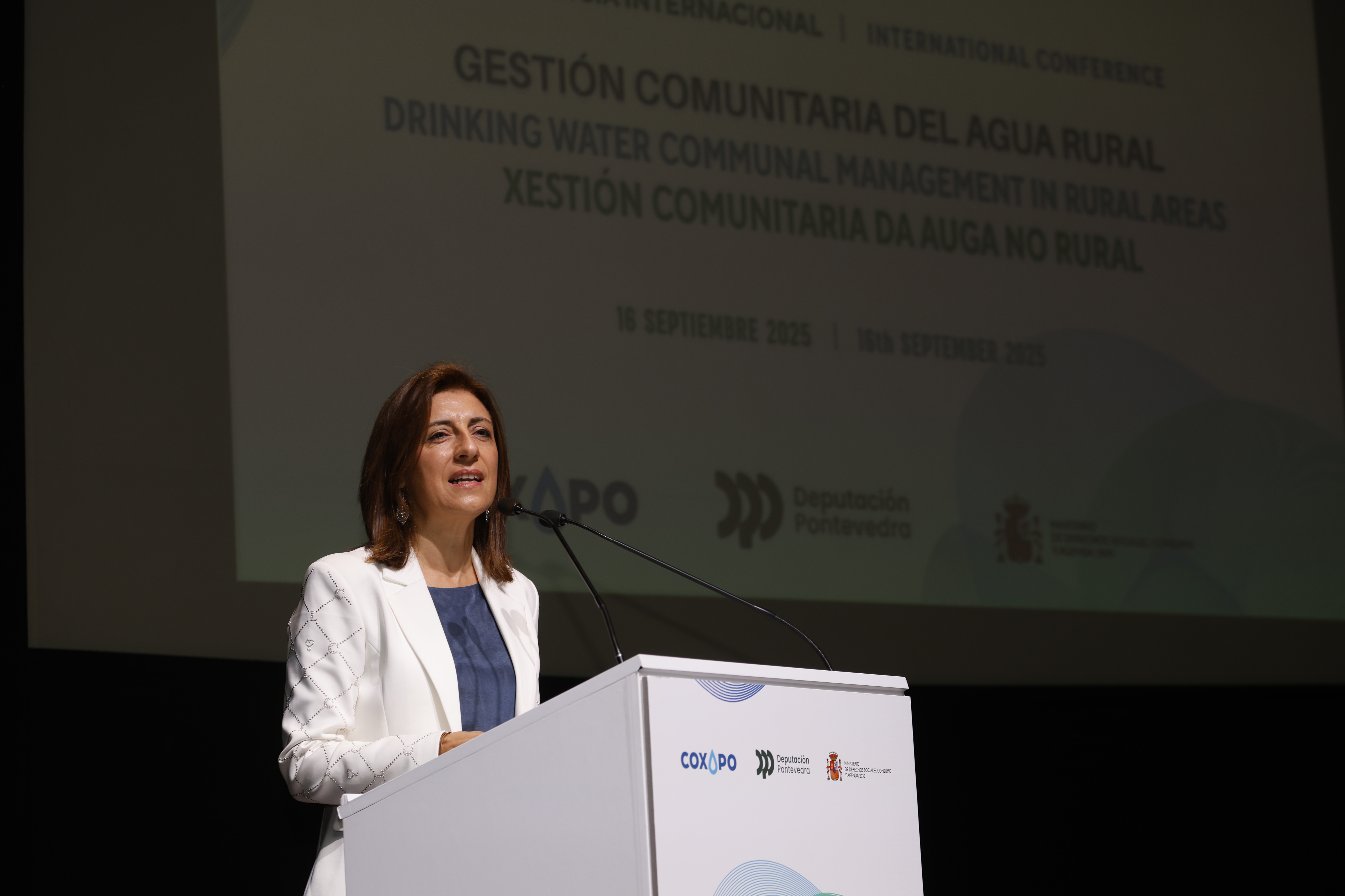 Ángeles Vázquez señala que Galicia afronta la influencia de la dispersión de la población en la prestación de servicios de suministro de agua con diferentes soluciones que buscan llegar a todos los lugares y a todos los ciudadanos.
