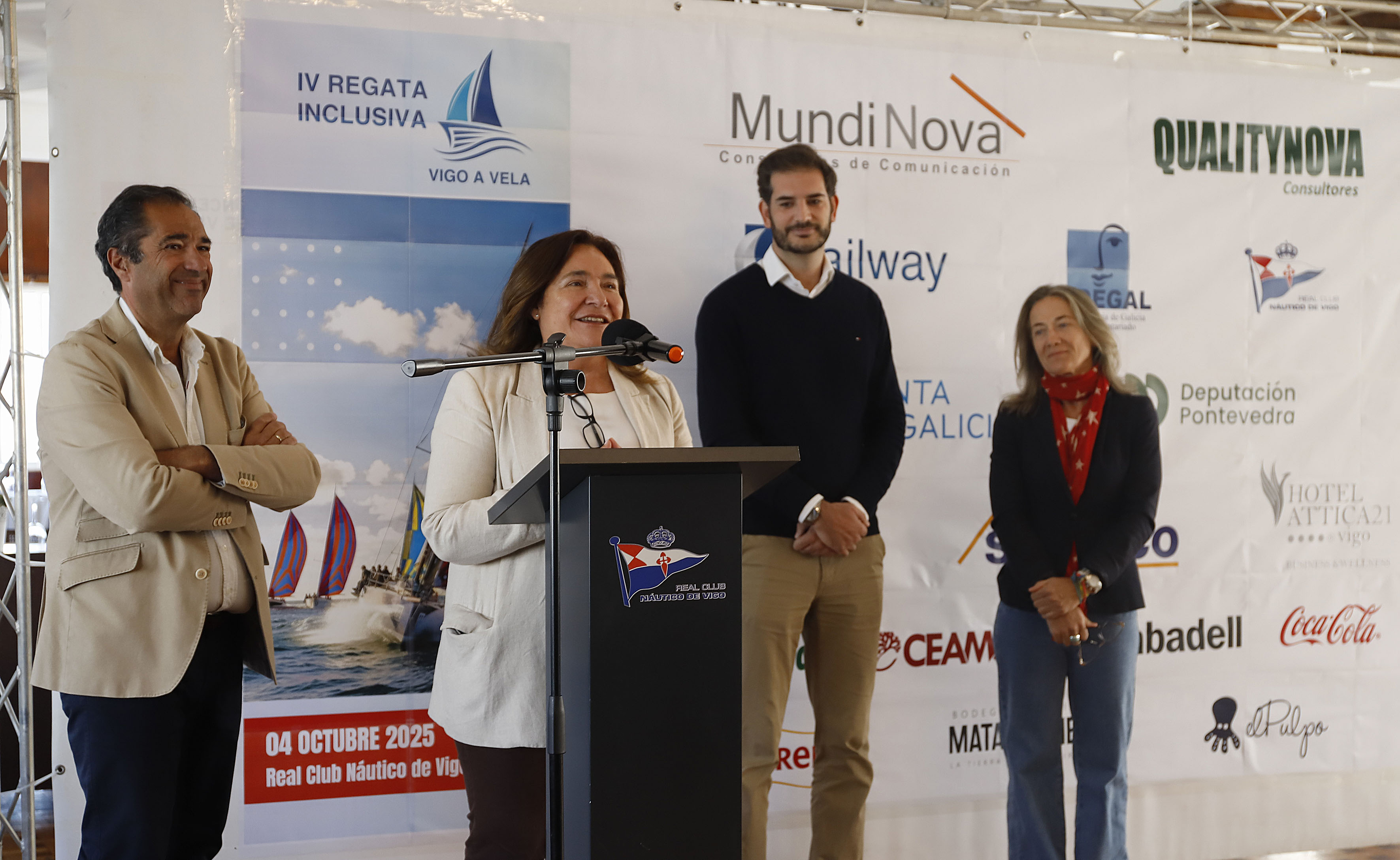 En la presentación de la prueba, además de la delegada territorial de la Xunta de Galicia en Vigo, participaron el presidente del Real Club Náutico de Vigo, Antonio Pérez Castro; el CIELO de Mundinova, Diego Maraña; la responsable de Comunicación de Coca-Cuela Europacific Partners, María Troncoso; la directora de Banca Privada en Galicia Sur del Banco Sabadell, Patricia de Oya; el director del Hotel Attica21 Samil, Daniele Provezza, y Laura Moya, de Sailway.