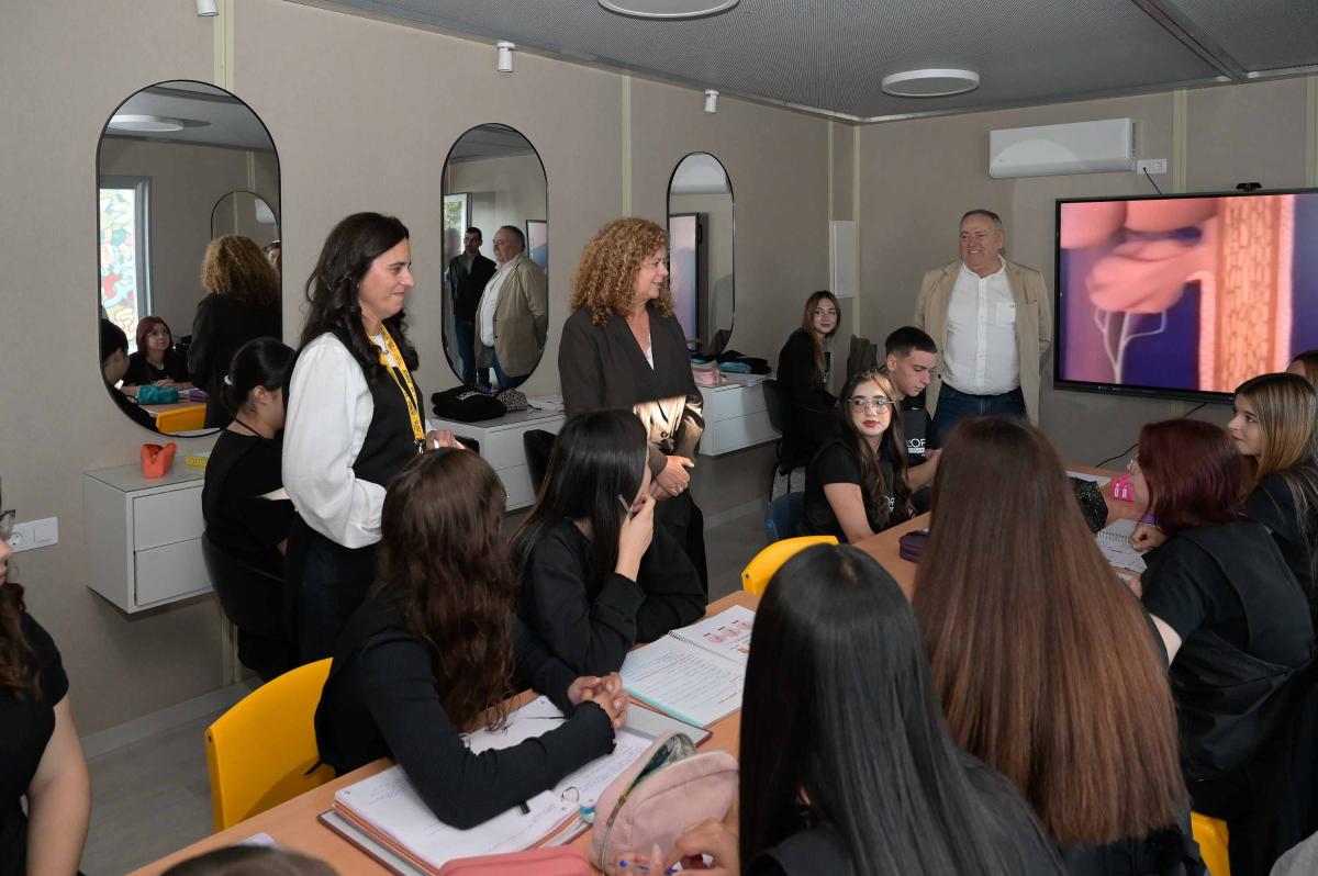 A representante da Consellería de Educación, Ciencia, Universidades e FP achegouse ata este centro educativo para visitar esta nova iniciativa do Goberno galego e intercambiar opinións ao respecto cos 18 alumnos que estrean este módulo totalmente equipado para recibir formación en peiteado. “Son unha novidade e un programa pioneiro da Formación Profesional galega que dá novas oportunidades aos estudantes en todo o territorio”, sinalou Eugenia Pérez.