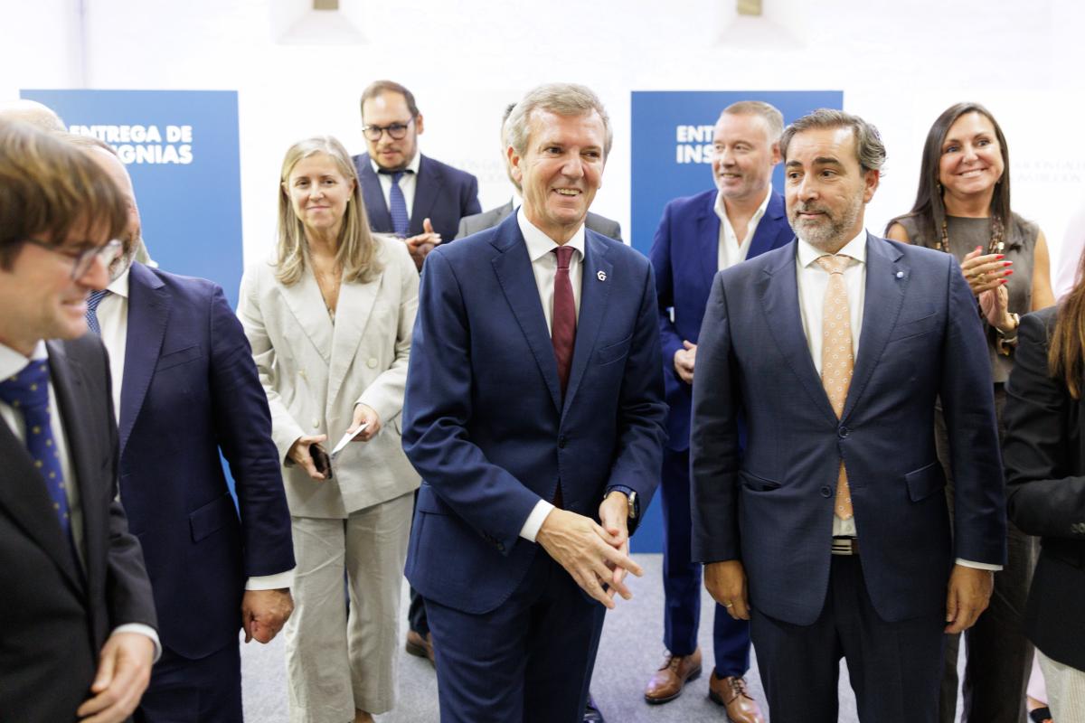 El presidente de la Xunta de Galicia, Alfonso Rueda, acompañado por la conselleira de Vivenda e Planificación de Infraestruturas, María Martínez Allegue, participó hoy en la entrega de la Insignia de Honor de la Federación Galega da Construción, donde destacó el papel del sector de la construcción para duplicar el parque público de vivienda en esta legislatura.