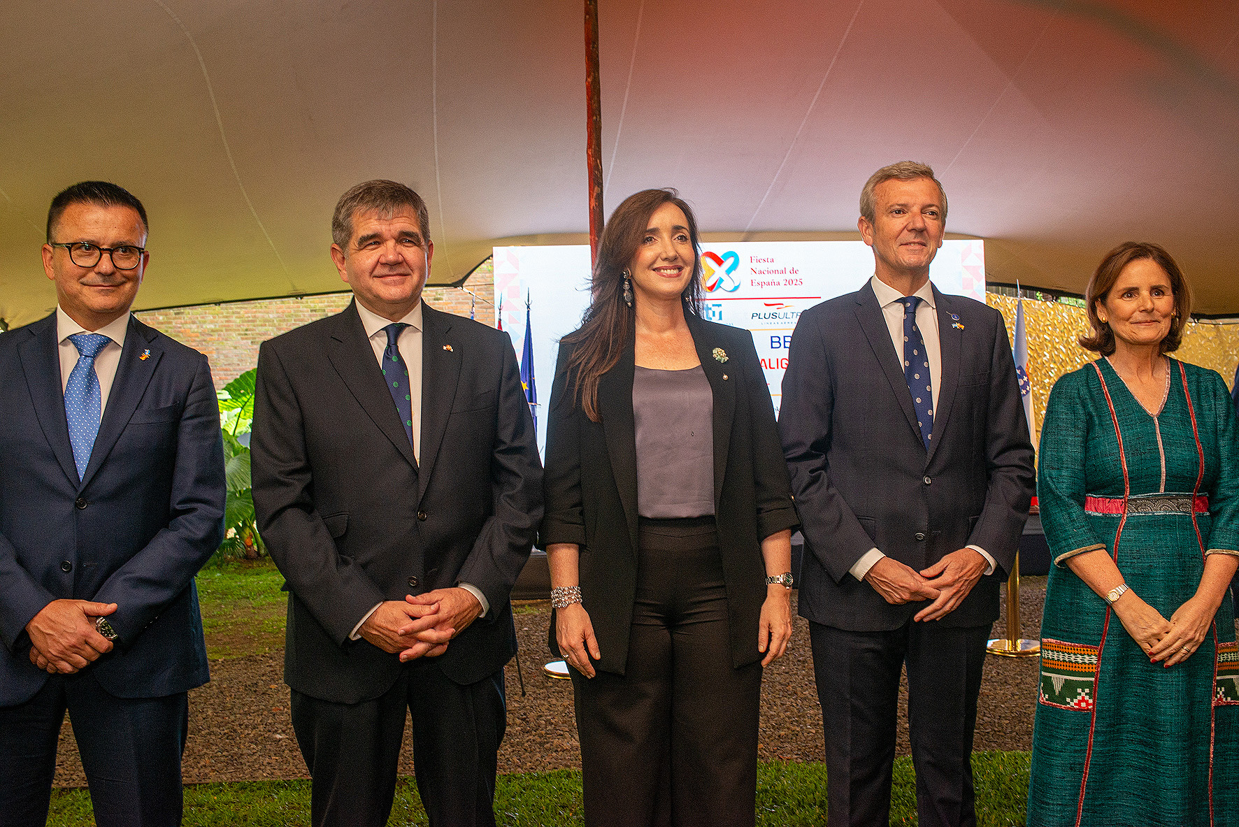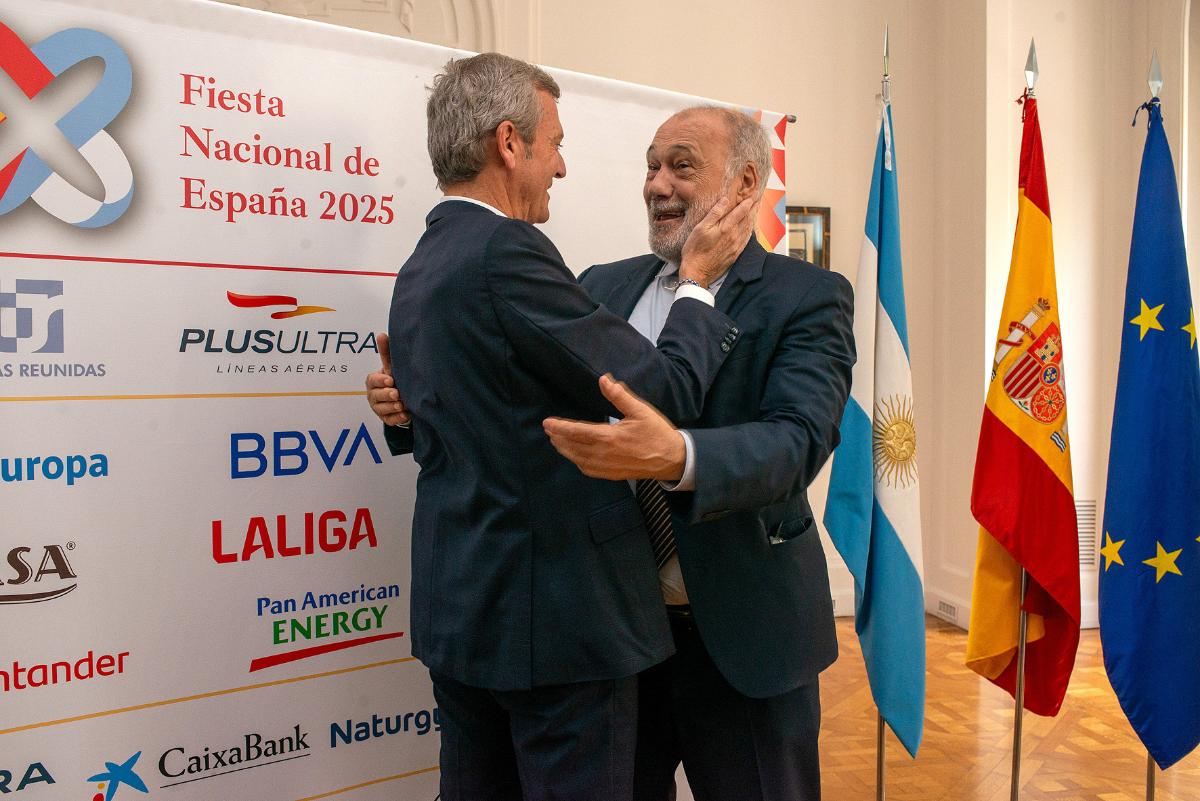 O presidente da Xunta, Alfonso Rueda, acompañado do conselleiro de Emprego, Comercio e Emigración, José González, do secretario xeral da Emigración, Antonio Rodríguez Miranda, e do delegado da Xunta na Arxentina, Alejandro López Dobarro, salientou hoxe en Bos Aires a fortaleza e a vixencia dos lazos entre Galicia e A Arxentina no acto de celebración do Día da Hispanidade celebrado na Embaixada de España neste país, no que Galicia participou como Comunidade convidada de honra: “España é un gran pais porque se compón de moitas identidades diferentes que conflúen nunha identidade nacional”, apuntou o presidente.
