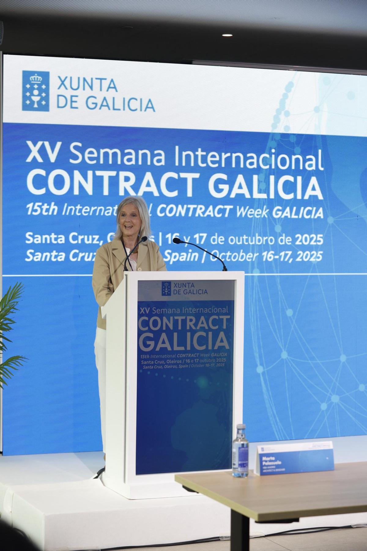 La directora del Igape, Covadonga Toca, participa en la inauguración de la XV Semana Internacional Contract Galicia donde subraya que este sector representa "la nueva Galicia industrial: creativa, sostenible y abierta al mundo", con más de 7.000 empleos y una facturación que supera los 400 millones de euros anuales