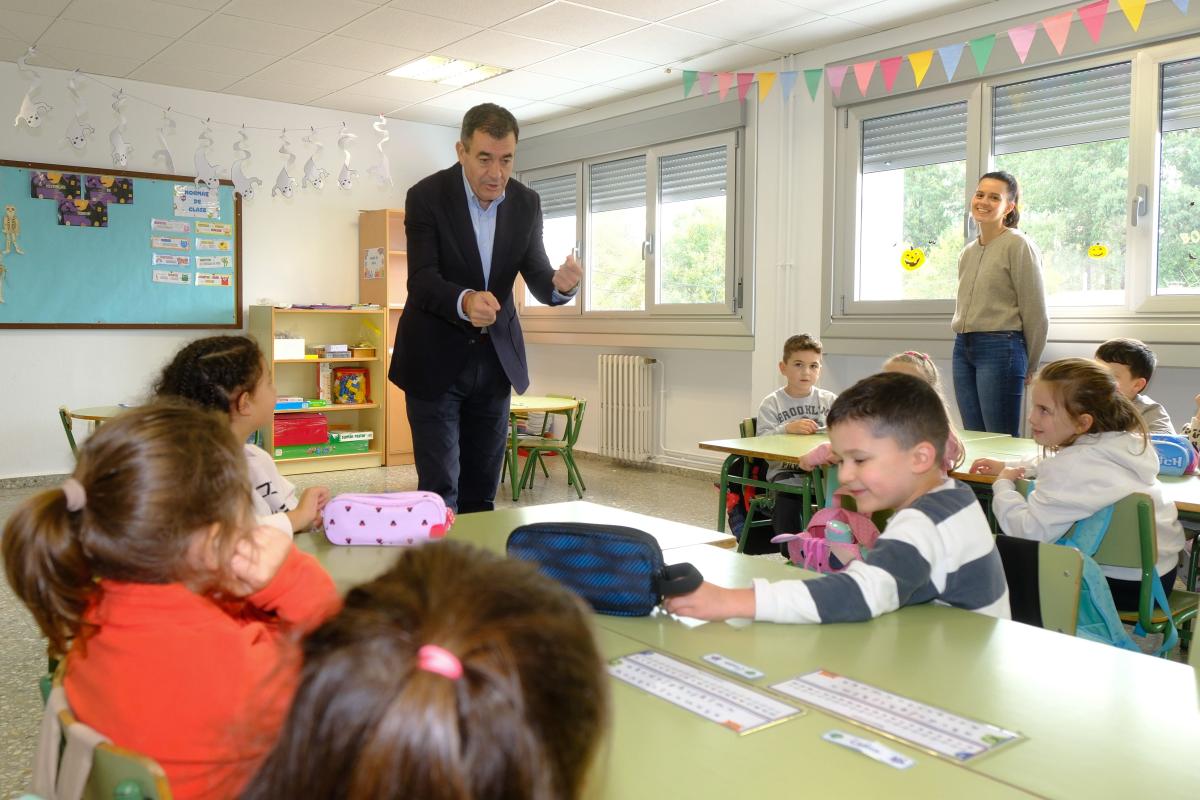 En el transcurso de una visita al Colegio Plurilingüe de Agolada, el conselleiro puso en valor que las cuentas del próximo año “permitirán seguir avanzando en la ejecución de la hoja de ruta del Gobierno gallego para renovar uno de los parques inmobiliarios más grandes de la Xunta, el de los centros educativos, integrado por alrededor de 1.600 edificios”.