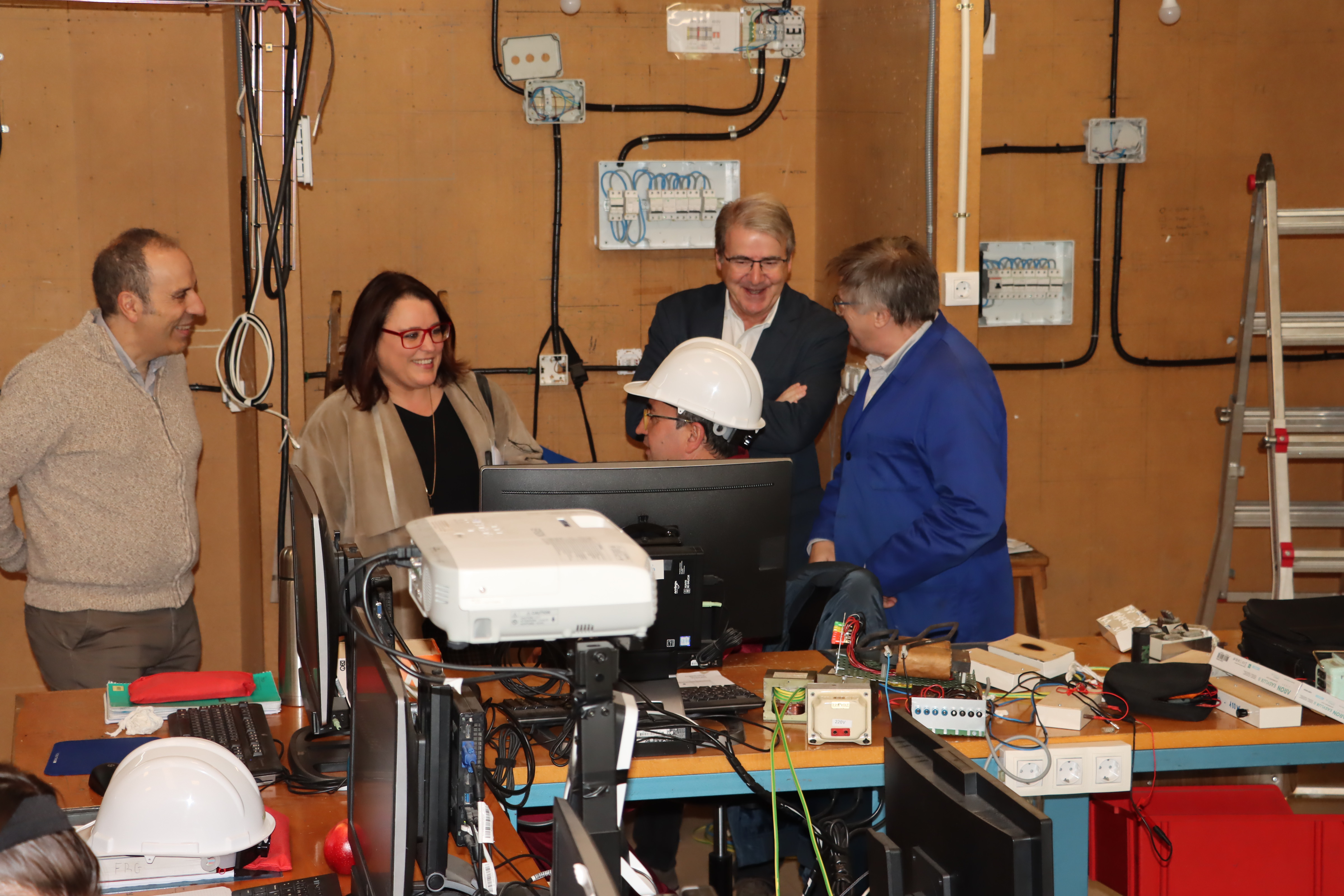No seu percorrido polas instalacións do CIFP Santa María de Europa, Manuel Pardo, que estivo acompañado do equipo directivo do centro, destacou as novidades máis importantes da Consellería de Emprego, Comercio e Emigración para o ano 2026 como é o caso do proxecto piloto de microcredenciais en competencias dixitais especializadas, dotado con 5 M€ ao abeiro do decreto pioneiro que Galicia prevé aprobar en decembro.