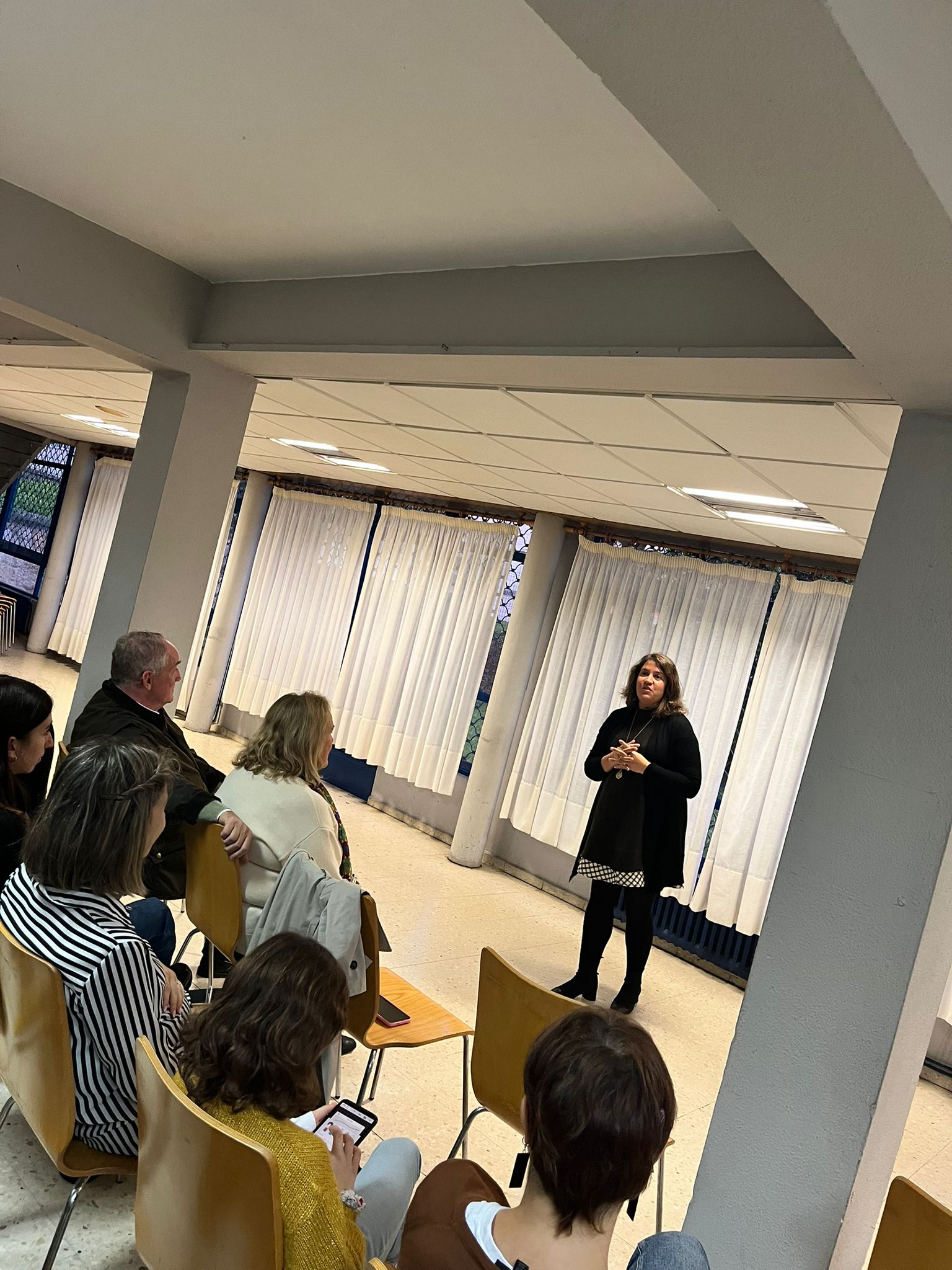 La directora general de Personas con Discapacidad, Begoña Abeijón, participó esta tarde en el encuentro de familias organizado por la Asociación de Colaboración y Promoción de las Personas Sordas (Acopros), donde pudo conocer las experiencias y vivencias de varias personas usuarias.