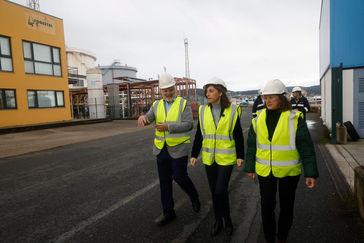 La conselleira de Medio Ambiente e Cambio Climático, Ángeles Vázquez, visitó hoy las instalaciones de la empresa Forestal del Atlántico en Mugardos, donde puso en valor su compromiso con la economía verde y con el medio ambiente con el proyecto Triskelion, que está desarrollando para producir metanol con hidrógeno renovable y dióxido de carbono (CO₂).