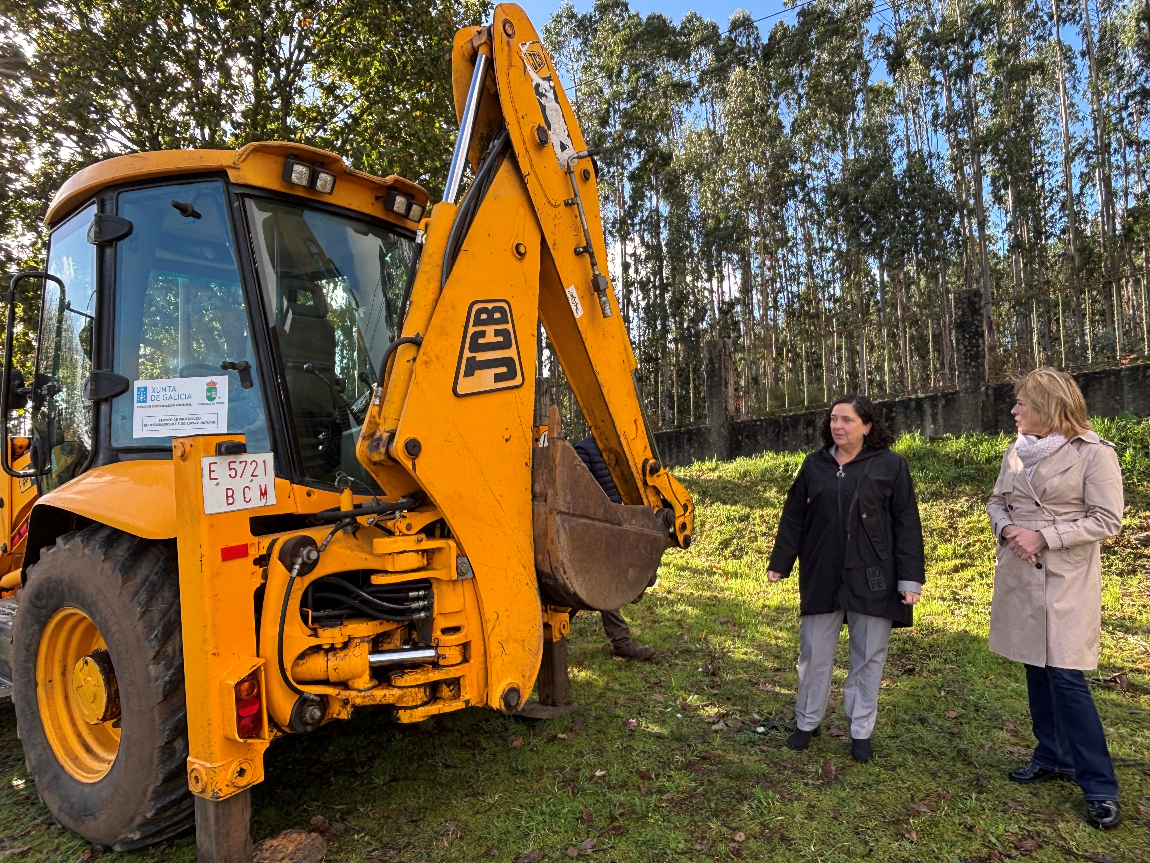 A delegada da Xunta, Belén do Campo, xunto coa alcaldesa de Trazo, Josefina Suárez, presentaron unha retroexcavadora adquirida polo Concello cunha axuda de 30.000 euros ao abeiro do Fondo de Compensación Ambiental competitivo para dar servizo á brigada ambiental coa que conta este municipio.