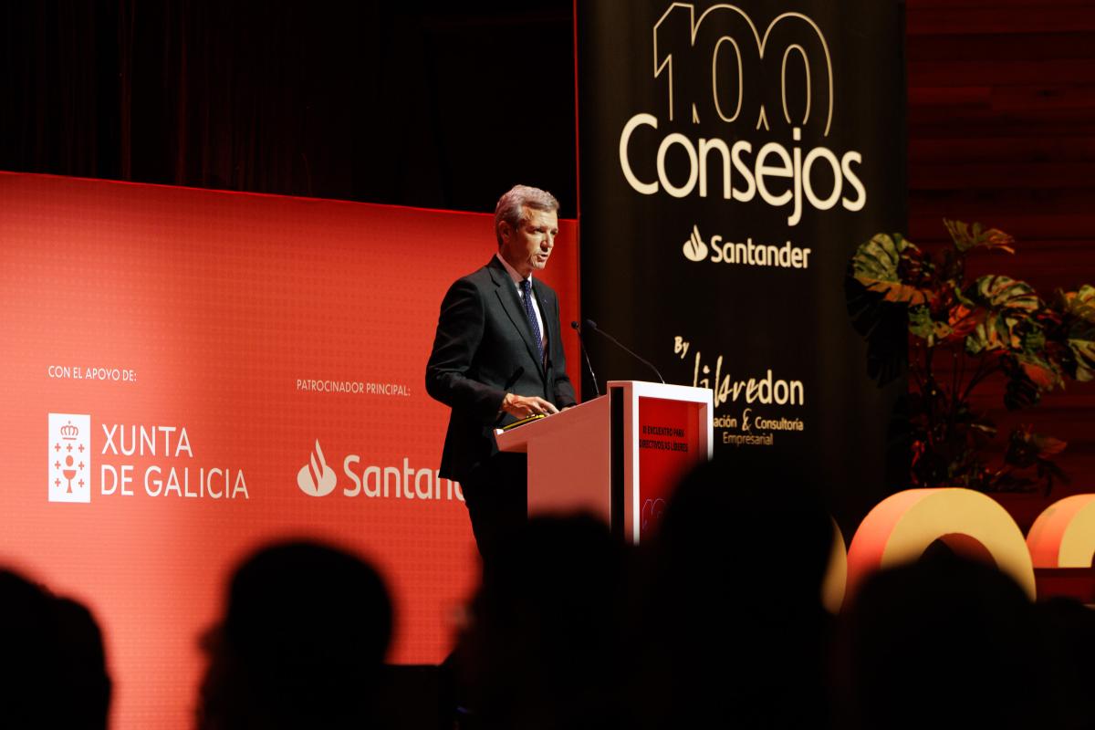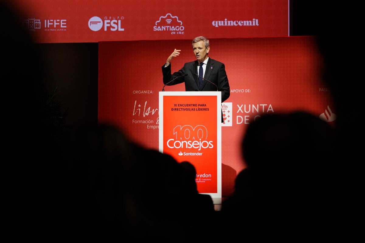 Así o expuxo durante a súa intervención no XI Encontro para Directivos/as Líderes 100 Consellos Santander, que se celebrou hoxe no Palacio de Congresos e Exposicións de Galicia en Santiago de Compostela. O titular do goberno galego foi o encargado de clausurar o acto, onde destacou que a comunidade contará o vindeiro ano cos orzamentos máis altos da historia da comunidade, que ascenden a 14.240 millóns de euros. “Ter orzamentos é fundamental. É importante saber con que recursos imos xogar. Non telos é camiñar cara ao desastre”, indicou.