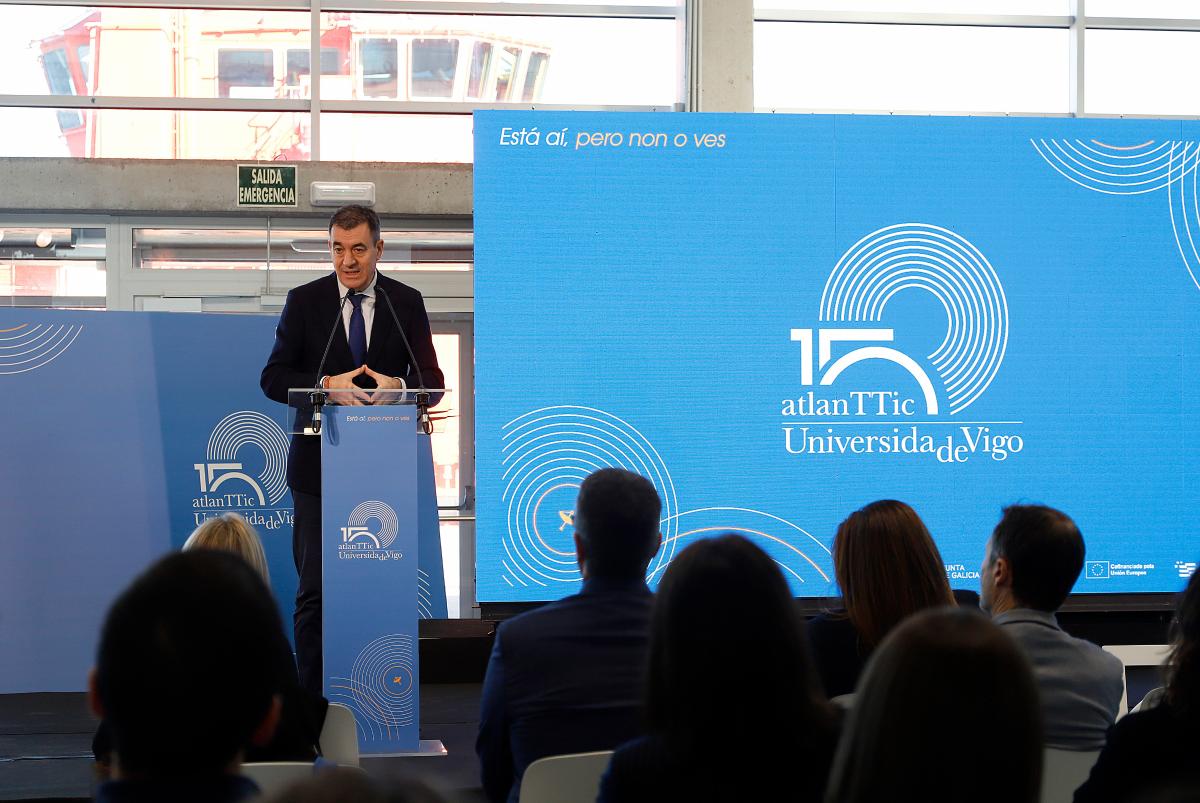 O conselleiro de Educación, Ciencia, Universidades e FP, Román Rodríguez, acompañado pola delegada territorial da Xunta en Vigo, Ana Ortiz, participou hoxe na celebración do 15 aniversario do Centro de investigación en Tecnoloxías de Telecomunicación (AtlanTTic) da Universidade de Vigo, unha cita para recoñecer “un proxecto que se consolidou como referente na innovación, transformación dixital e ciberseguridade de Galicia”, afirmou o conselleiro, quen felicitou aos 237 traballadores que “forman parte da familia AtlanTTic”.