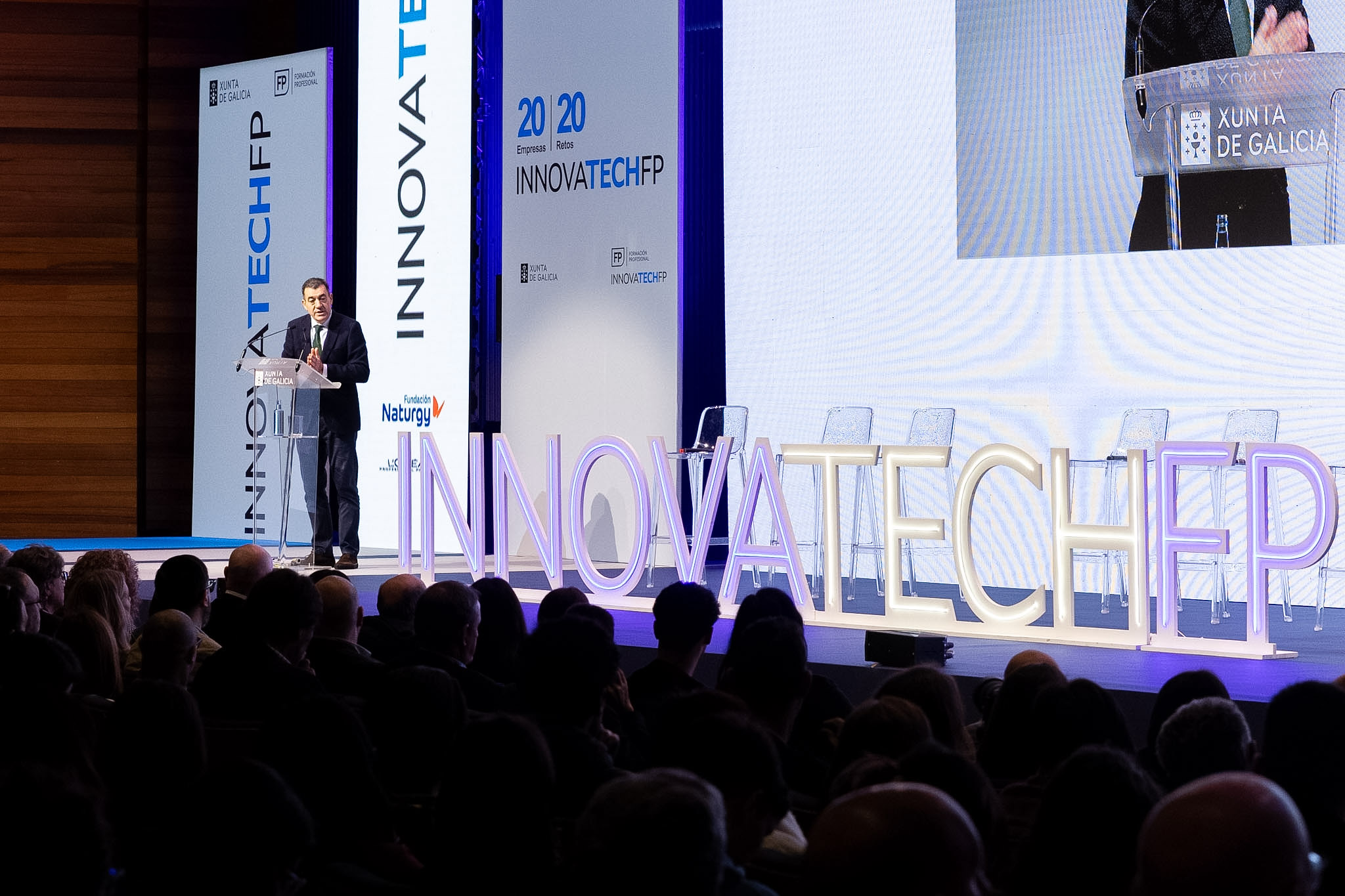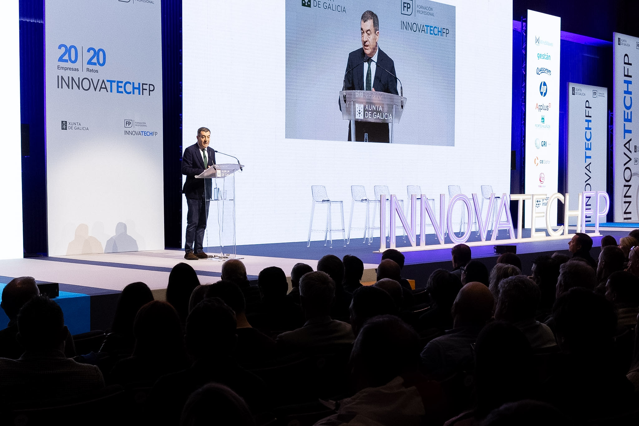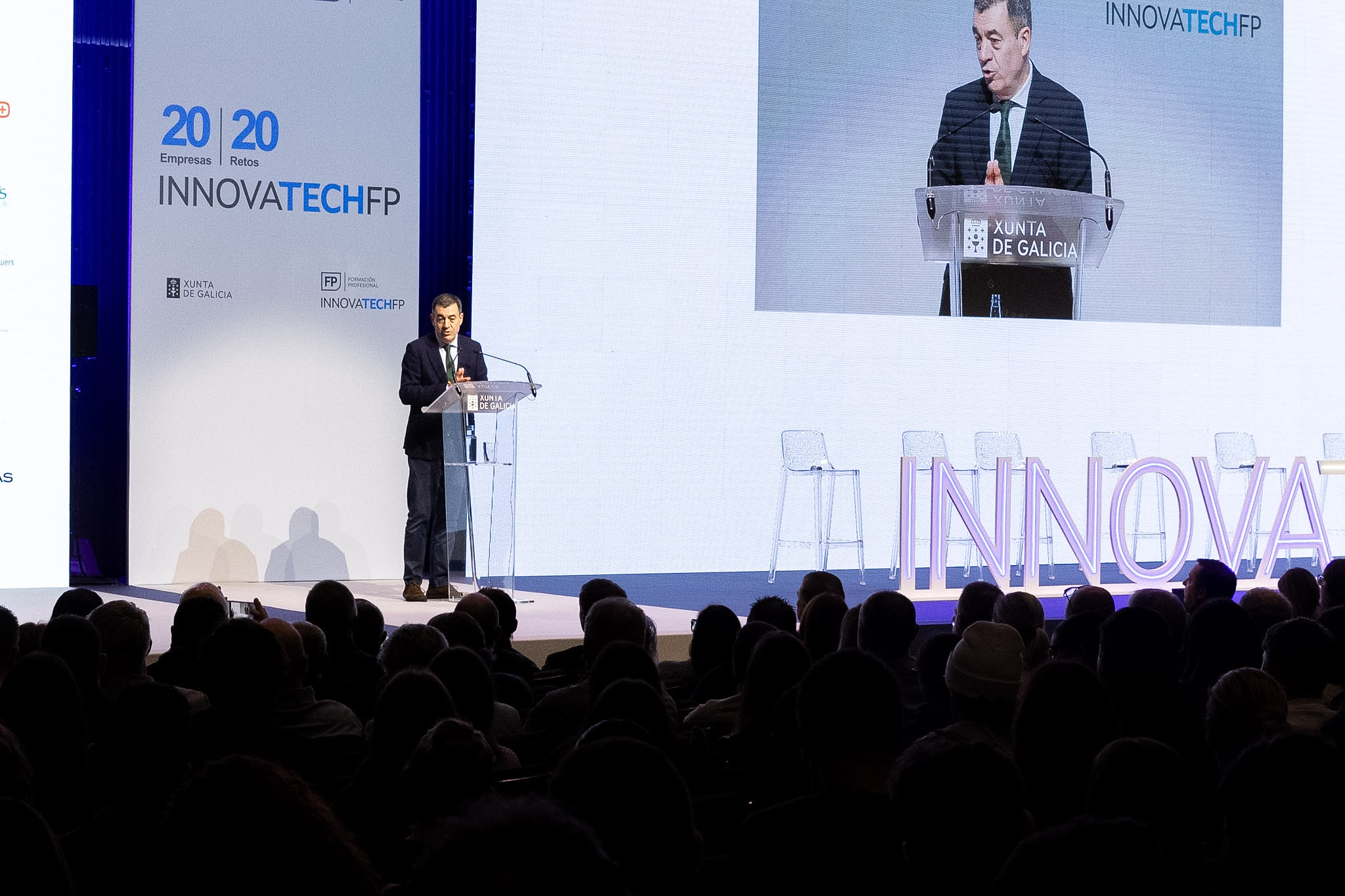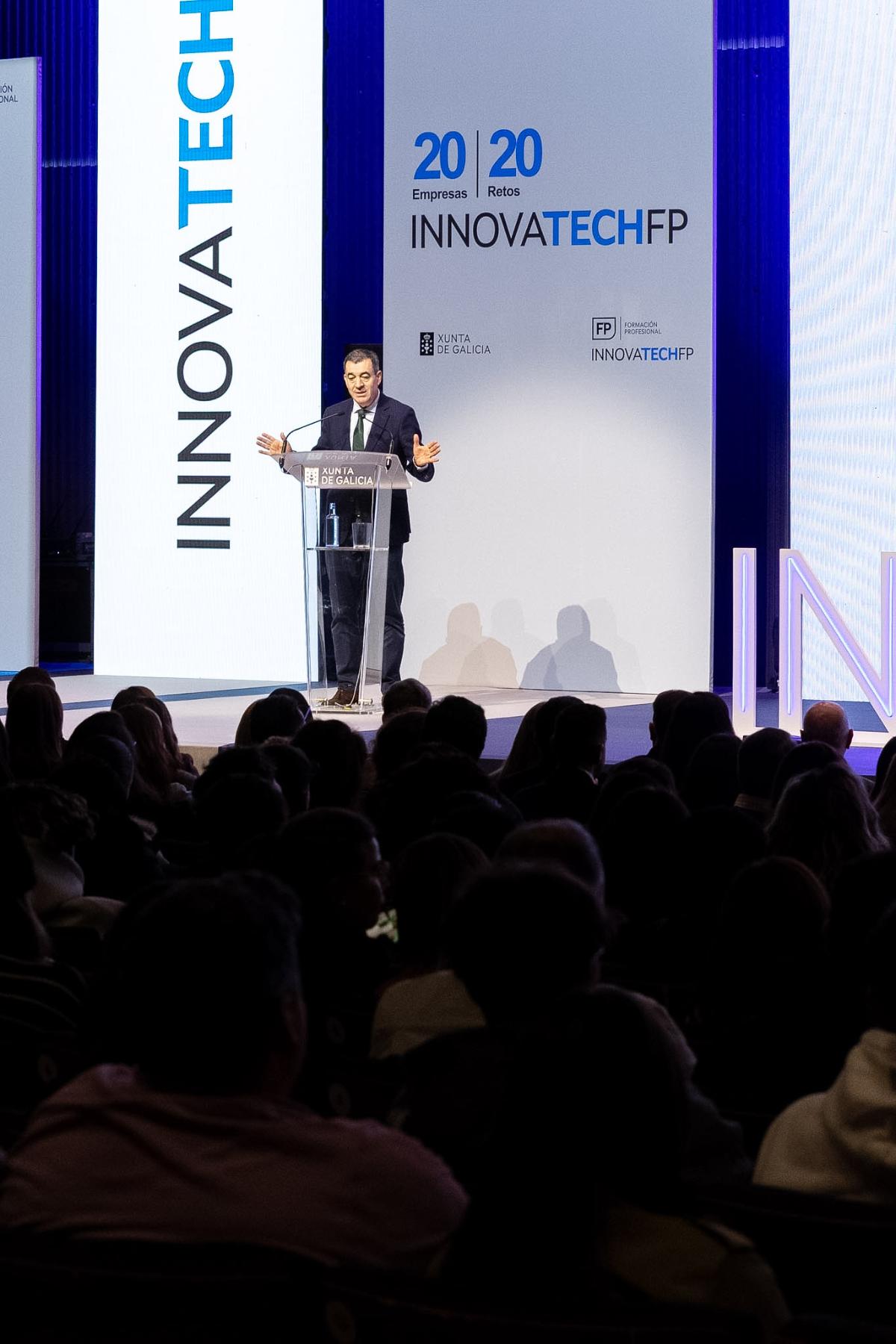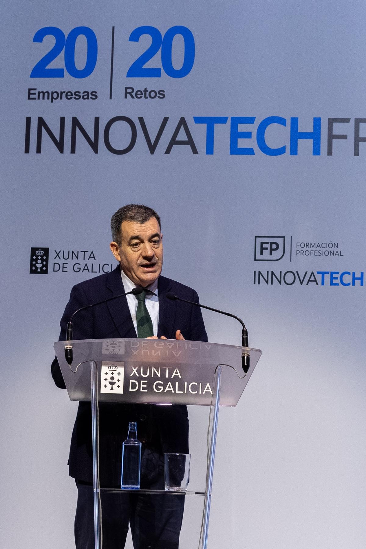 O conselleiro de Educación, Ciencia, Universidades e Formación Profesional, Román Rodríguez, participou hoxe no lanzamento dos retos da III edición do programa InnovaTech FP, que este ano acada un novo récord de participación: máis de 1.000 estudantes, un 7% máis que na pasada edición, e 20 empresas implicadas, o dobre que na súa primeira convocatoria.