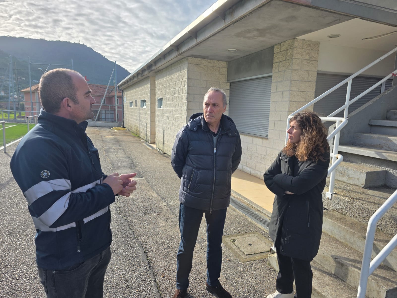 El delegado territorial visitó el resultado de los trabajos de relevo de la cubierta de los vestuarios del campo de fútbol de las Tornas, en Oia