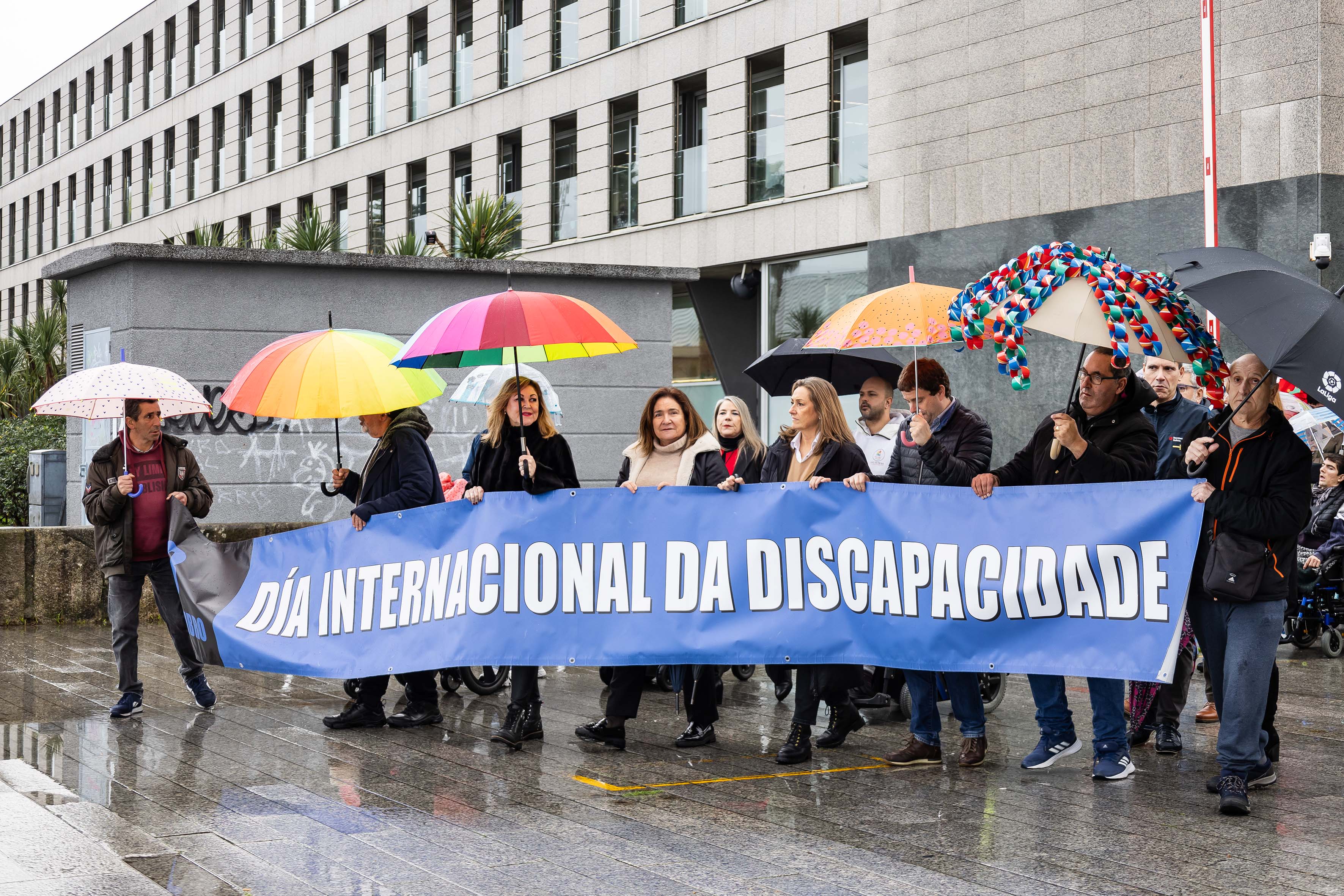 A delegada territorial da Xunta en Vigo, Ana Ortiz, participou este mércores no acto para celebrar o Día Internacional da Discapacidade "Baixo o mesmo paraugas", no que máis dun centenar de paraugas de cores realizaron o percorrido entre a Delegación Territorial do Goberno galego na cidade e Estación de Ría. Os paraugas abríronse un ano máis en seis cidades galegas para concienciar sobre a diversidade e reivindicar de forma conxunta unha vida digna e plena para este colectivo. No acto levouse a cabo a lectura dun manifesto realizado por varias persoas con discapacidade.