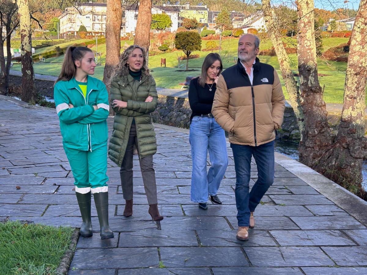 A delegada territorial de Ferrol, Martina Aneiros, visitou esta mañá o Concello das Somozas para coñecer a unha destas traballadoras contratadas para o servizo de mantemento de espazos verdes