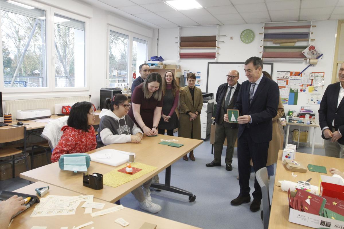 El conselleiro de Educación, Ciencia, Universidades y FP, Román Rodríguez, visitó esta mañana el Centro de Educación Especial de Vilagarcía de Arousa, cuyo alumnado realiza la postal con la que el departamento educativo de la Xunta de Galicia felicitará la Navidad este año.