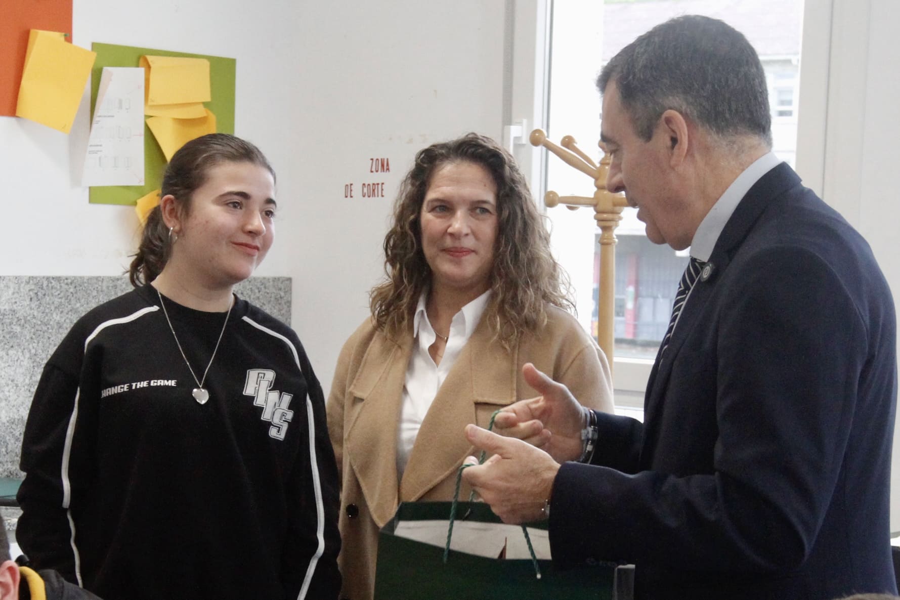 El conselleiro, acompañado por el delegado territorial de la Xunta en Pontevedra, Agustín Reguera, quiso felicitar a los estudiantes, que le entregaron el original de la tarjeta, por su trabajo, que será difundido en estas semanas en toda la Comunidad. Además, agradeció a los docentes del centro su apoyo en esta labor y su implicación y dedicación diaria al desarrollo académico y personal pleno de estos jóvenes.
