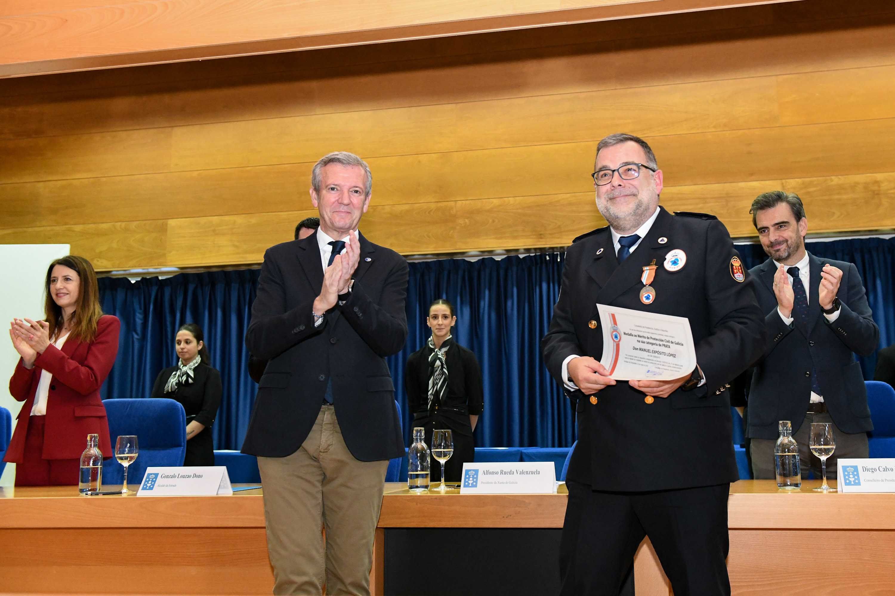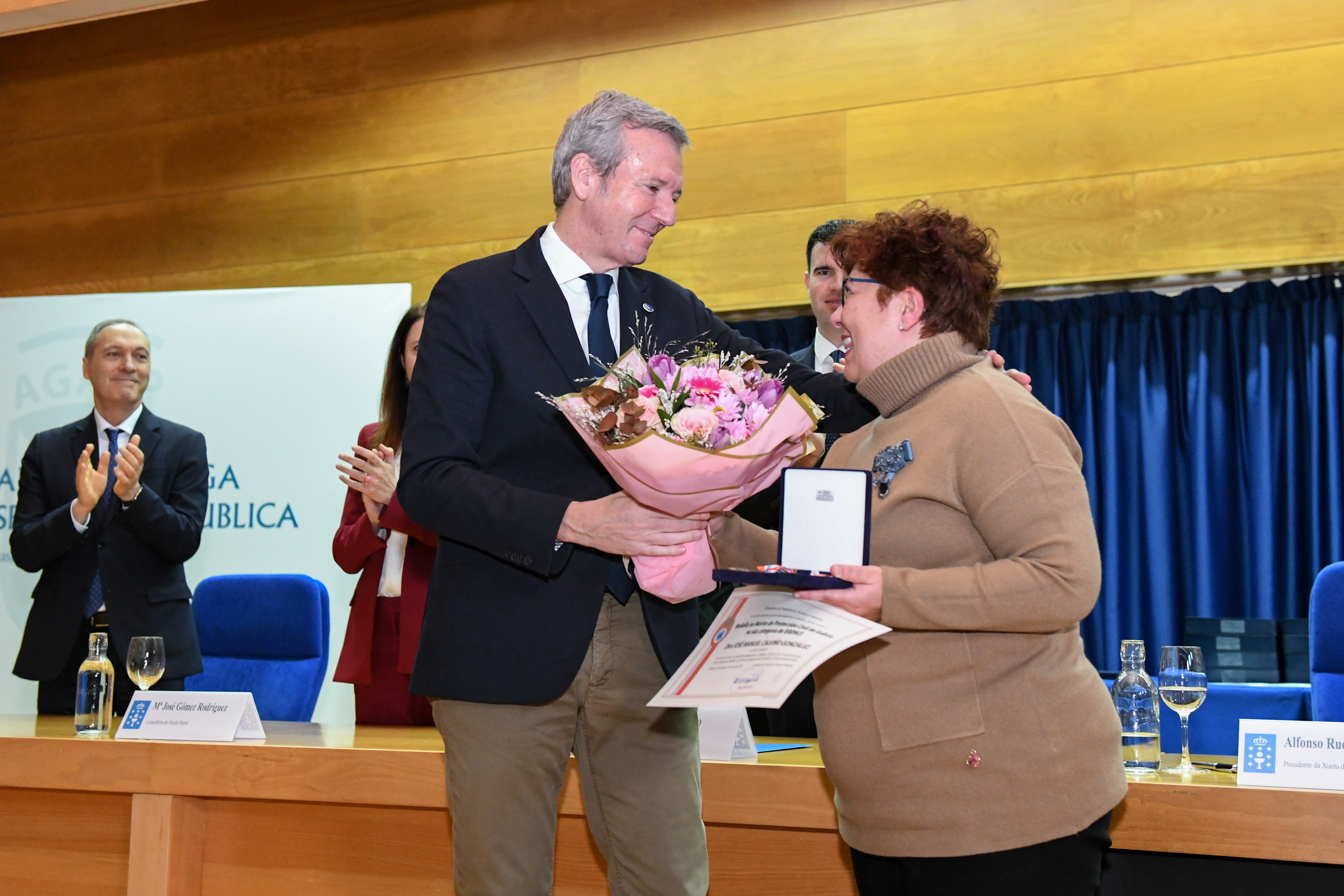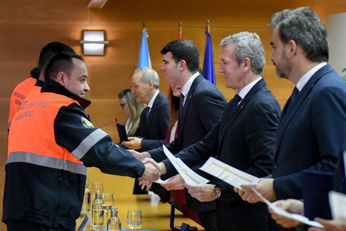 Rueda felicitou a todos os premiados e agradeceu o labor de todas as Asociacións de Protección Civil pola súa “colaboración diaria” en emerxencias e na prevención de riscos, “unha das partes máis importantes desa Galicia Calidade que temos aquí e que queremos levar ao mundo”. Cabe destacar que este ano supón máximos históricos en canto ao número de voluntarios pertencentes ás 236 agrupacións que existen en Galicia, con 4.500 efectivos.
