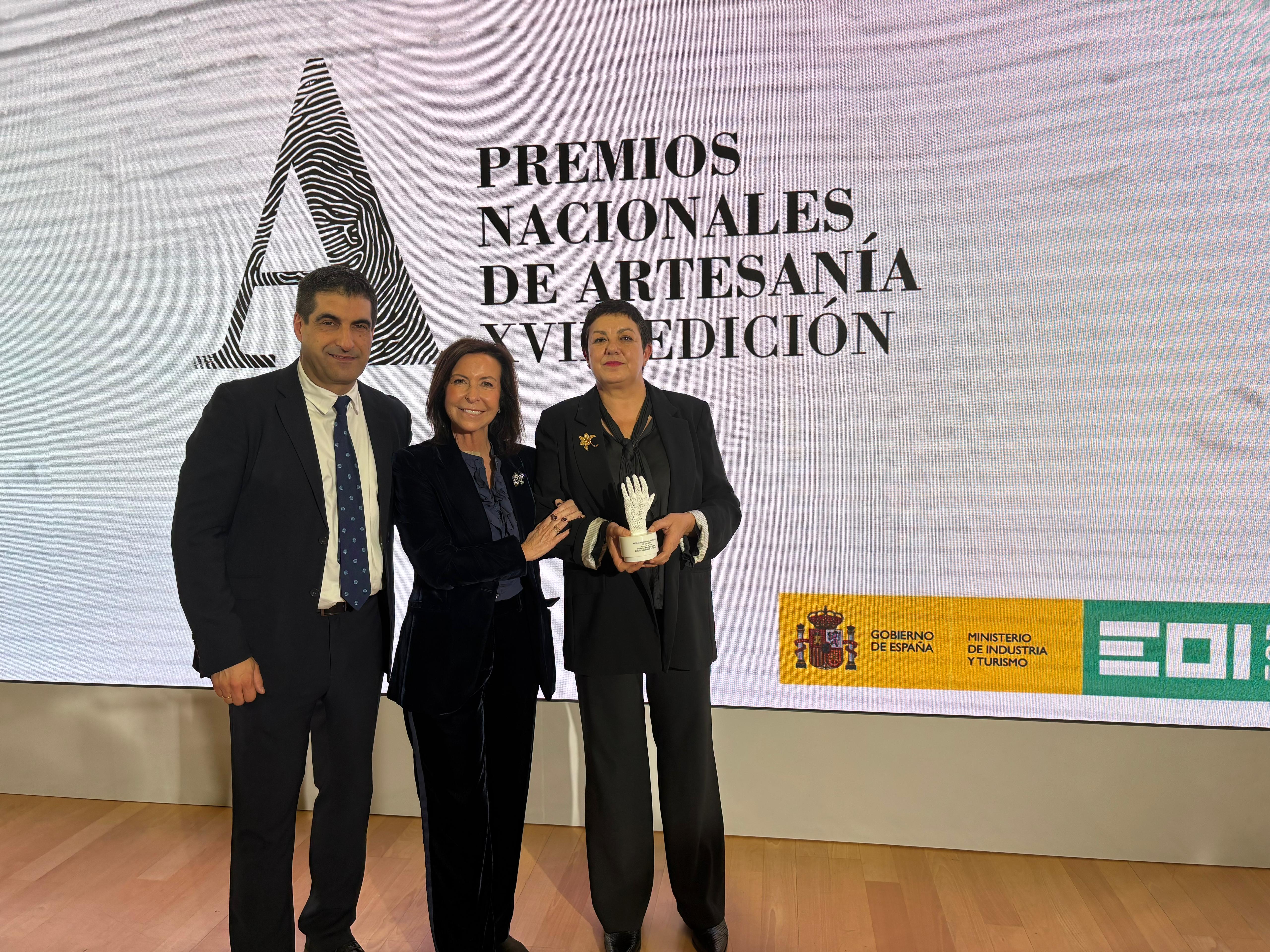 El director xeral de Comercio e Consumo y la gerente de la Fundación Artesanía de Galicia recogieron el Premio Promociona para Entidades Públicas por el proyecto Artesanía no Prato, pionero en España y en el que se fusionan artesanía y gastronomía con el objetivo de incrementar la singularidad, la exclusividad y el valor añadido de las propuestas resultantes. Se trata del cuarto galardón que recibe la Fundación Artesanía de Galicia en esta categoría, ya que resultó ganadora en 2023 por la iniciativa Corazón da Artesanía. Encontro da Artesanía Tradicional e Popular de Galicia, celebrado en los Pendellos de Agolada; en 2016, por el proyecto Enredadas, que busca la diversificación del oficio tradicional de las redeiras gallegas para abrir nuevos mercados en ámbitos como la moda o la decoración; y en 2012, por combinar el apoyo a los oficios tradicionales con una apuesta por la innovación y adaptación a nuevos mercados. Durante su intervención, Gabriel Alén destacó que el proyecto Artesanía no Prato se basa en tres agentes muy vinculados al territorio: el producto agroalimentario, los cocineros y cocineras y las piezas de Artesanía de Galicia.