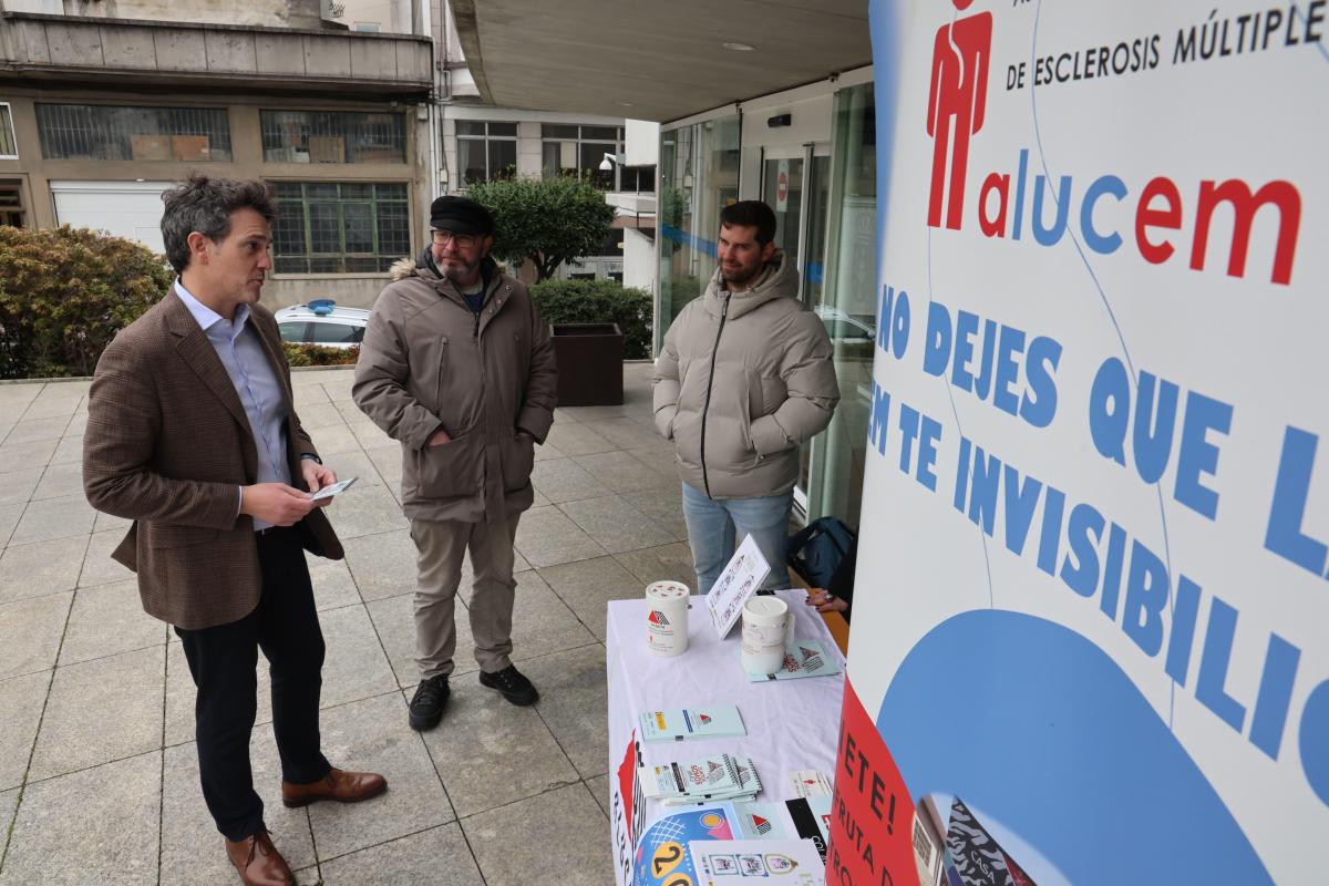 O delegado territorial da Xunta en Lugo, Javier Arias, visitou hoxe a mesa informativa instalada na explanada da Delegación Territorial por Alucem con motivo do Día Nacional da Esclerose Múltiple.