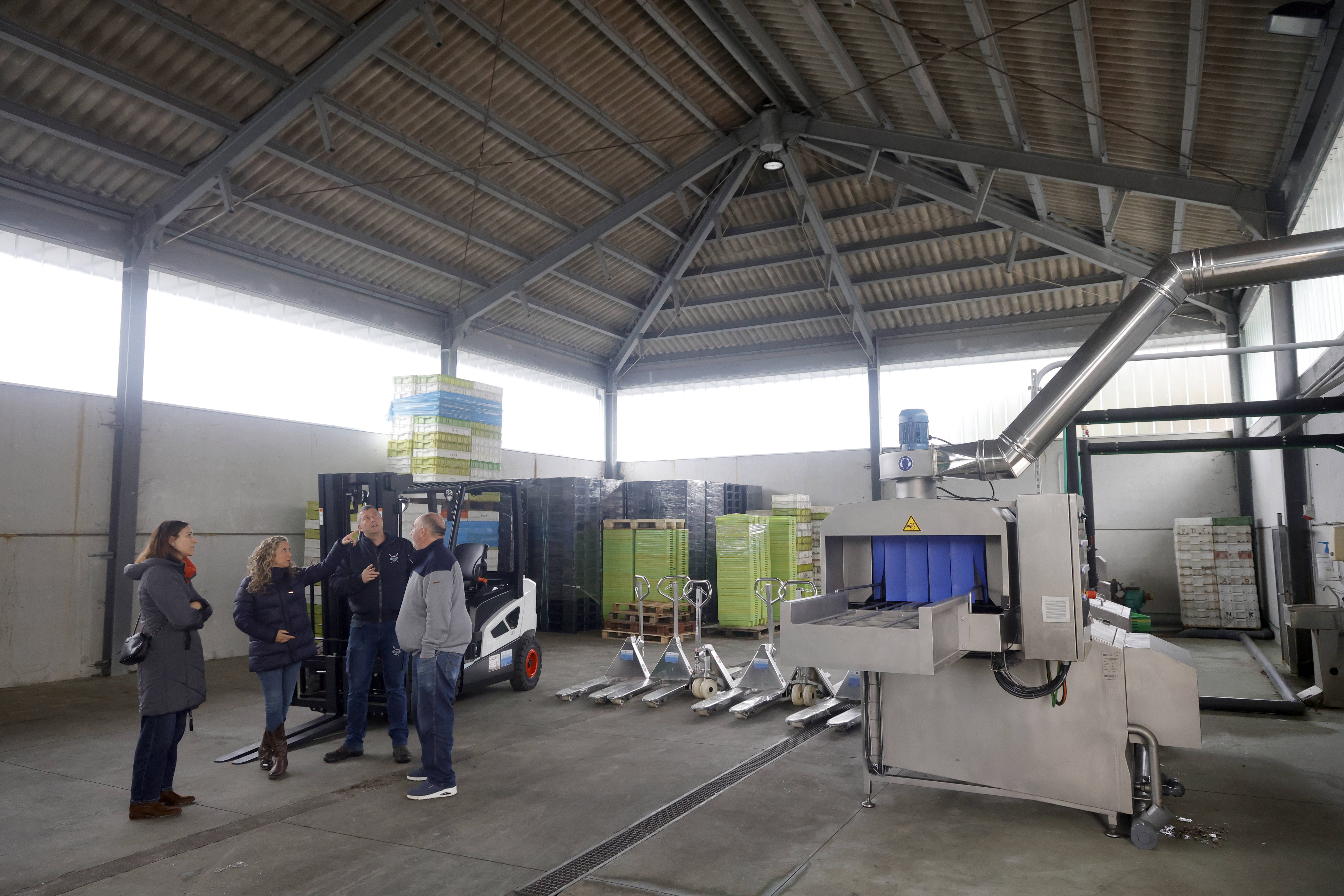 Tal e como puido comprobar a delegada, a axuda foi destinada á adquisición dunha carretilla e seis traspaletas manuais, ademais dun túnel de lavado de caixas en circuíto pechado con auga quente xabonosa e aclarado. Tamén se acometeron melloras na nave de caixas da confraría.