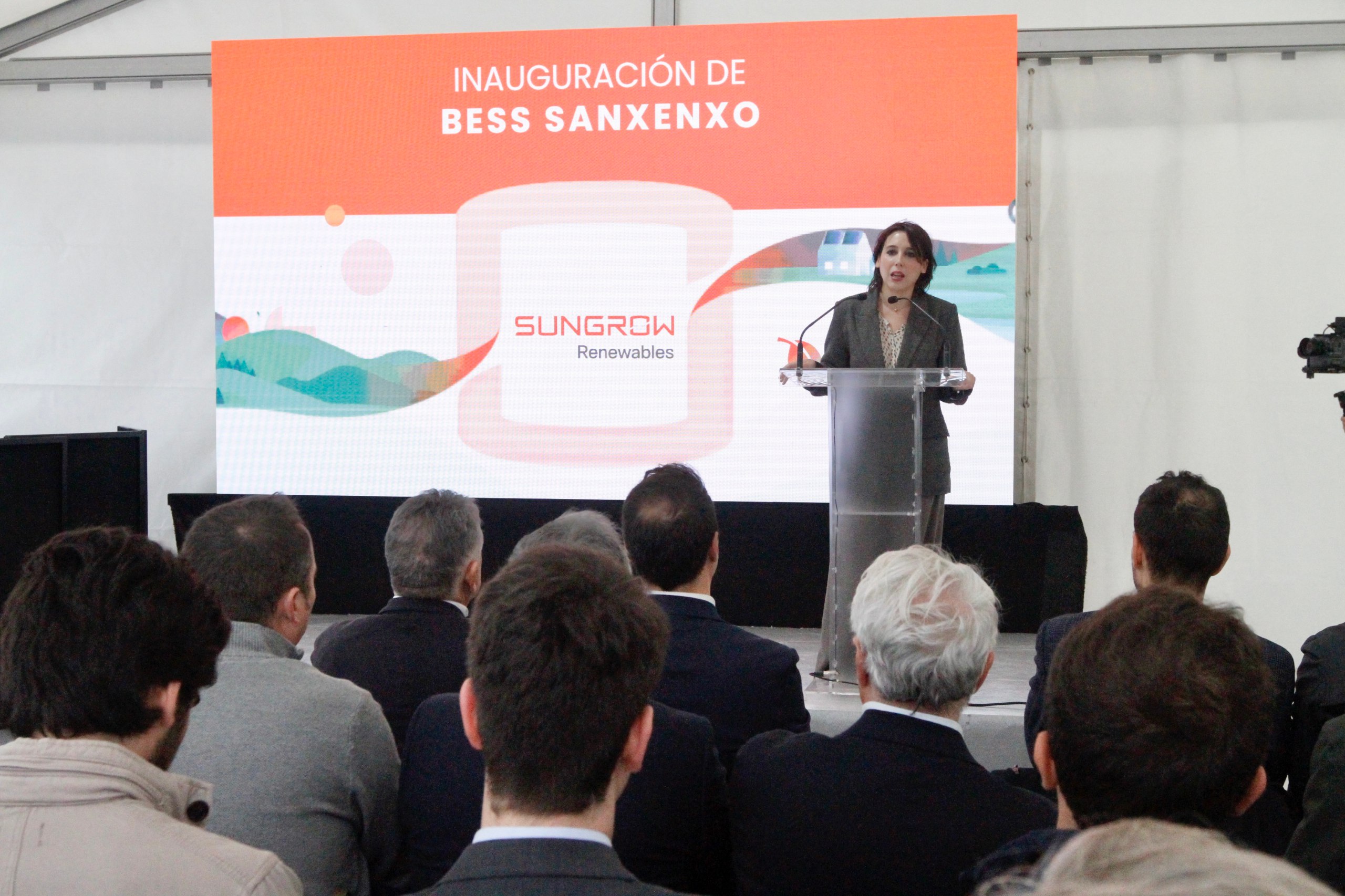 A conselleira de Economía e Industria, María Jesús Lorenzana, asistiu hoxe á inauguración da primeira planta de almacenamento enerxético Bess Sanxenxo, impulsada por Sungrow Renewables