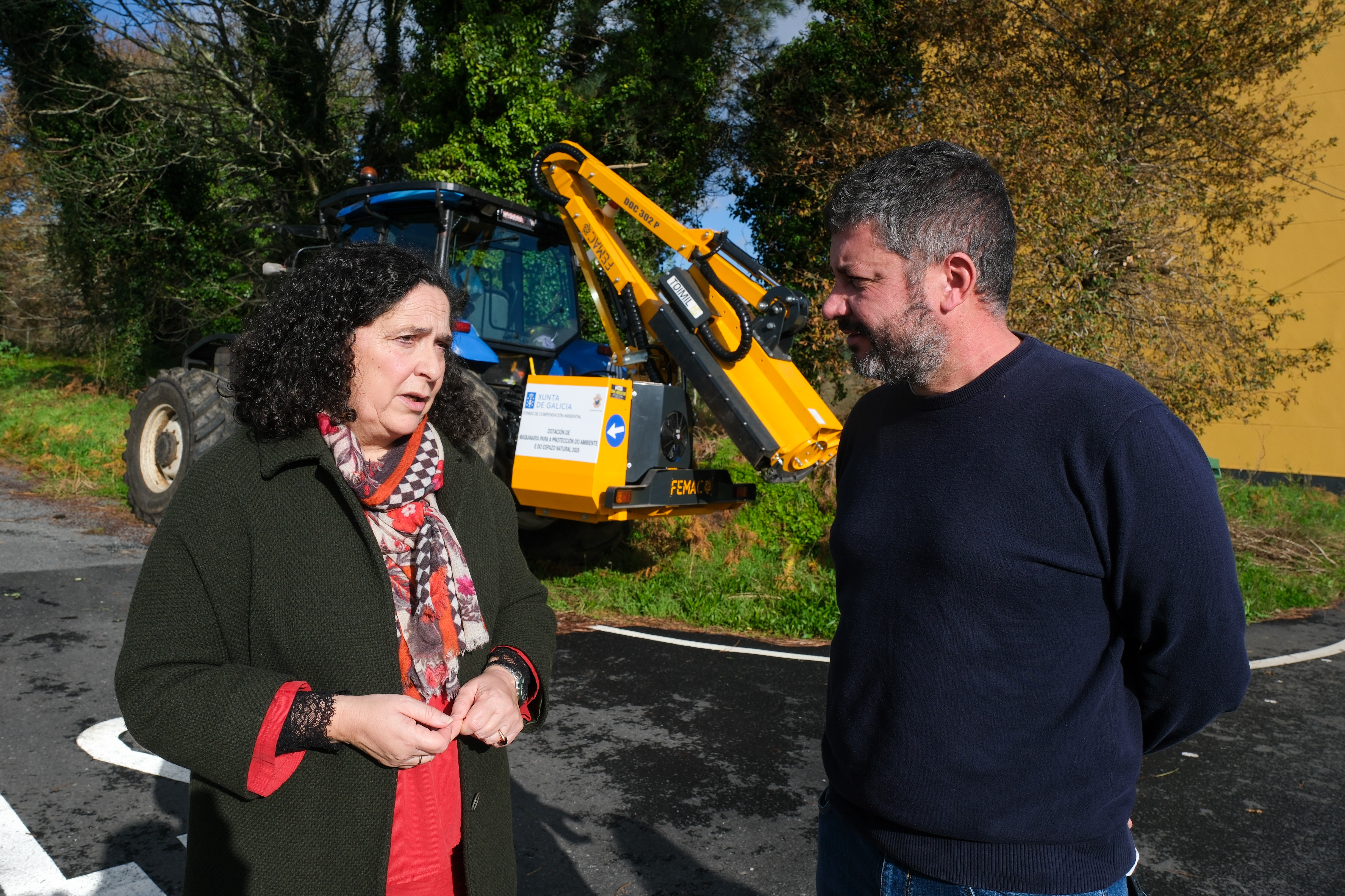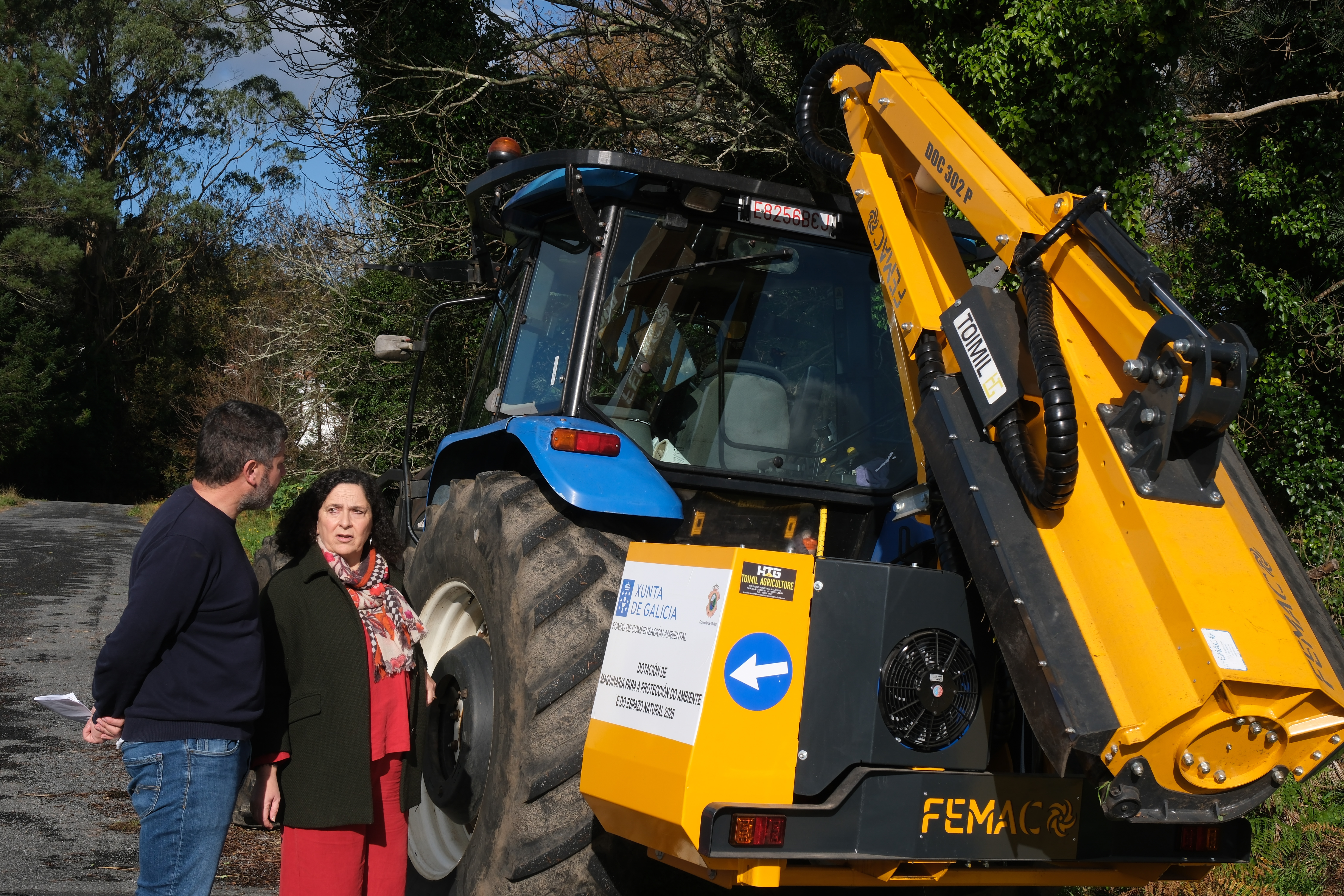 Belén do Campo presenta la nueva desbrozadora de brazo adquirida por el Ayuntamiento de Outes que contó con una aportación de la Xunta de 30.000 €