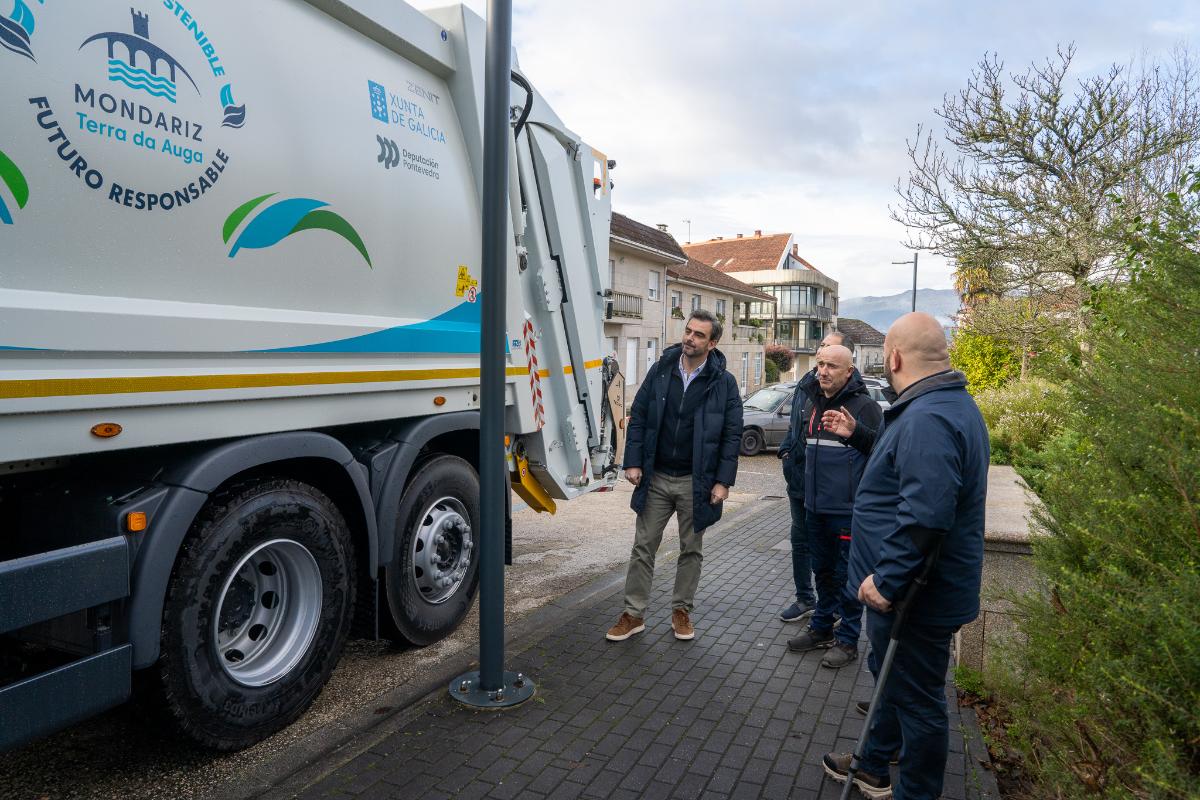 O conselleiro de Presidencia, Xustiza e Deportes, Diego Calvo, visitou hoxe Mondariz, onde o Concello adquiriu un camión compactador destinado á recollida separada de residuos, para o que a Xunta destinou unha achega de case 183.000 euros, o 70% do custo total de máis de 261.200 euros.
