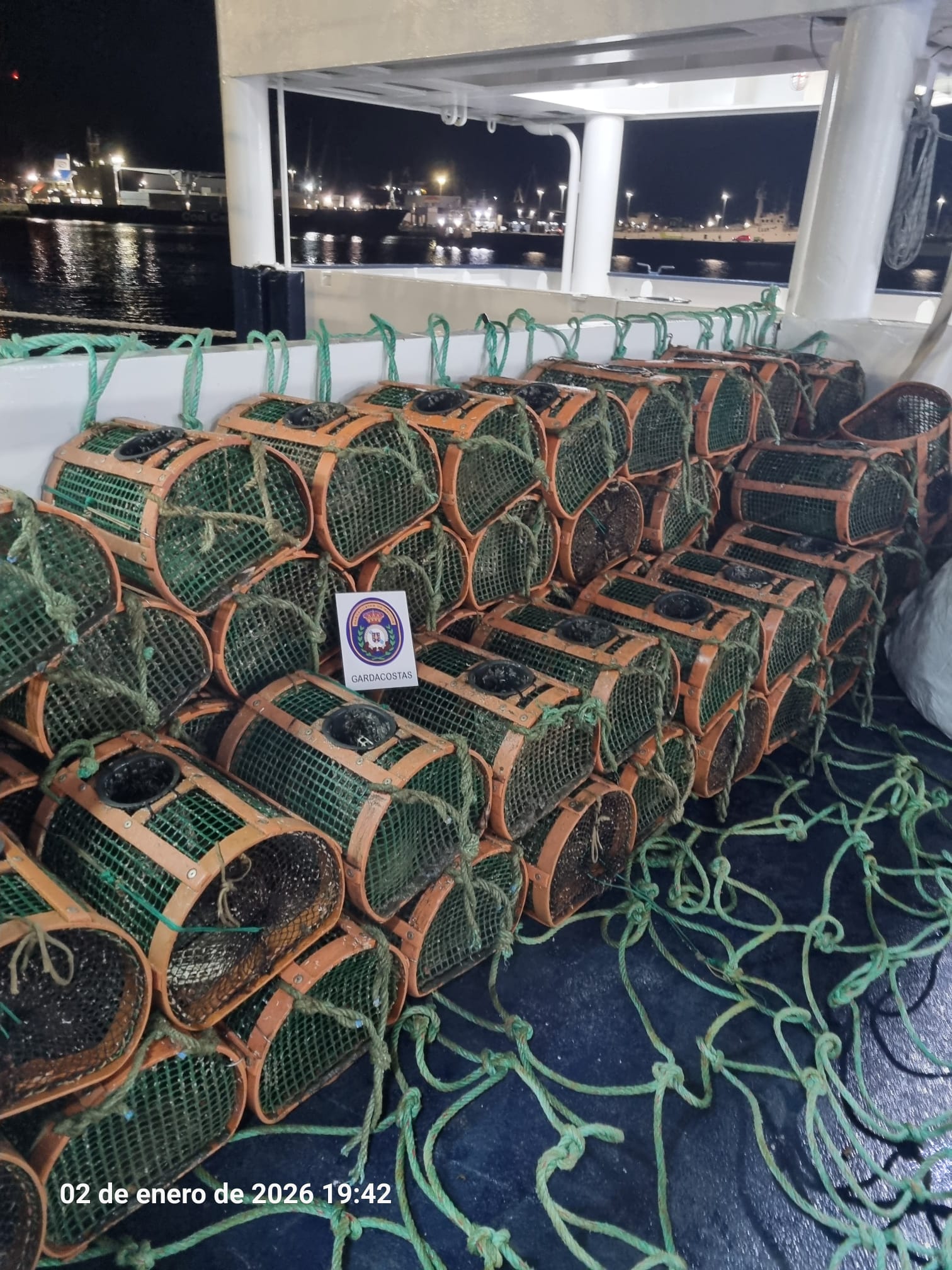 Gardacostas de Galicia realiza en 2025 case 10.000 inspeccións, retira 36.000 aparellos ilegais e incauta máis de 27.000 quilos de produto