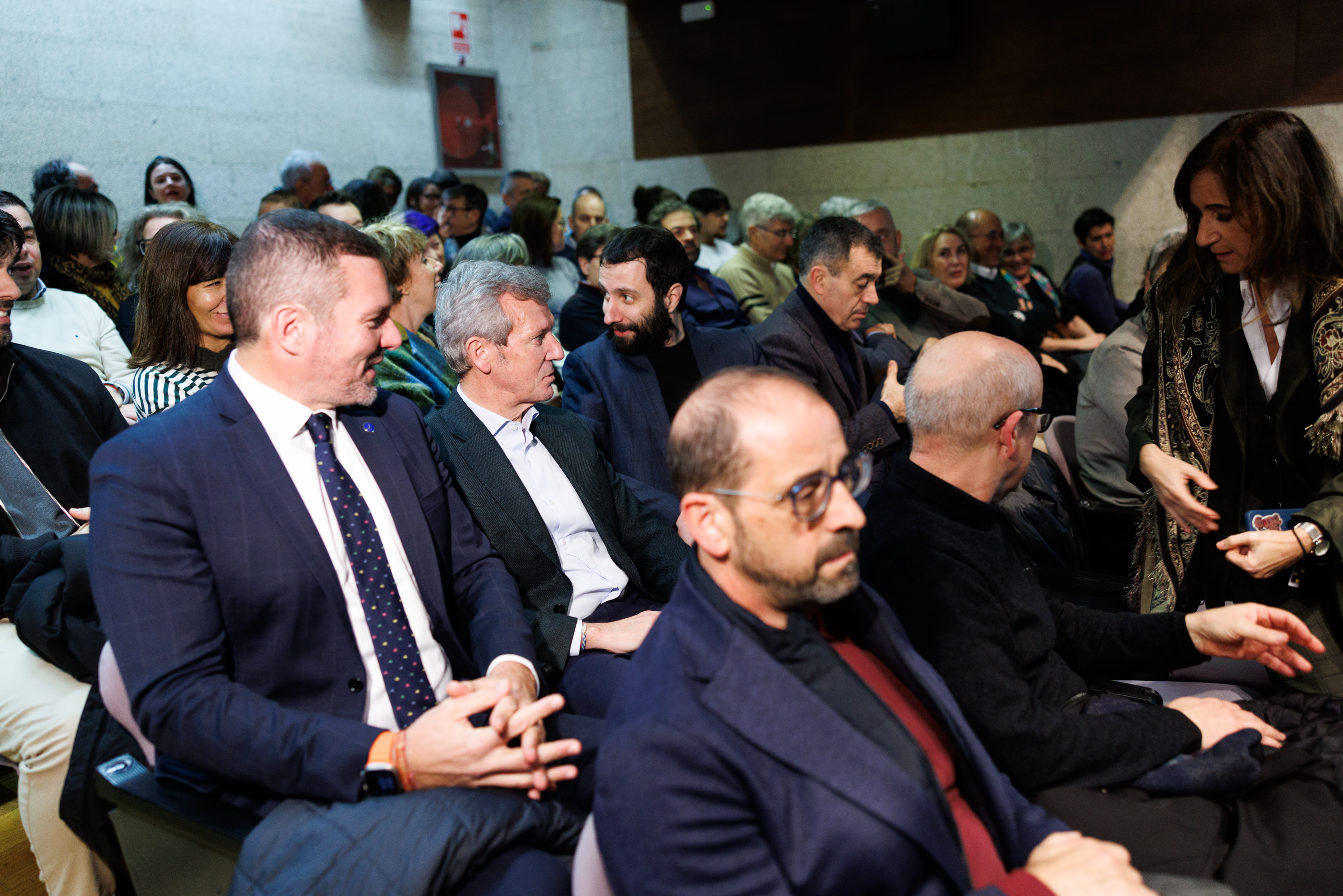 O presidente da Xunta, Alfonso Rueda, acompañado do conselleiro de Educación, Ciencia, Universidades e FP, Román Rodríguez, e do conselleiro de Cultura, Lingua e Xuventude, José López Campos, asistiu á estrea do novo espectáculo do Centro Dramático Galego Memorias dun neno labrego no Salón Teatro.