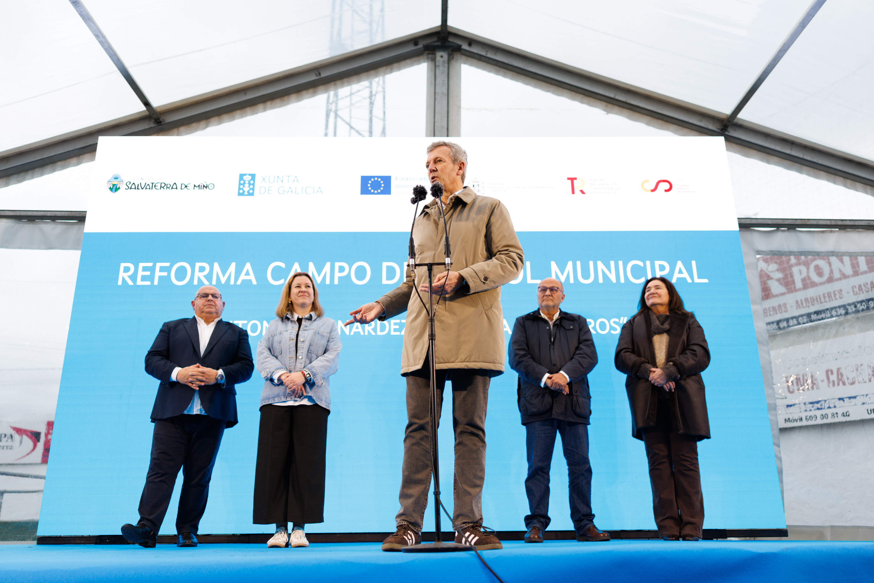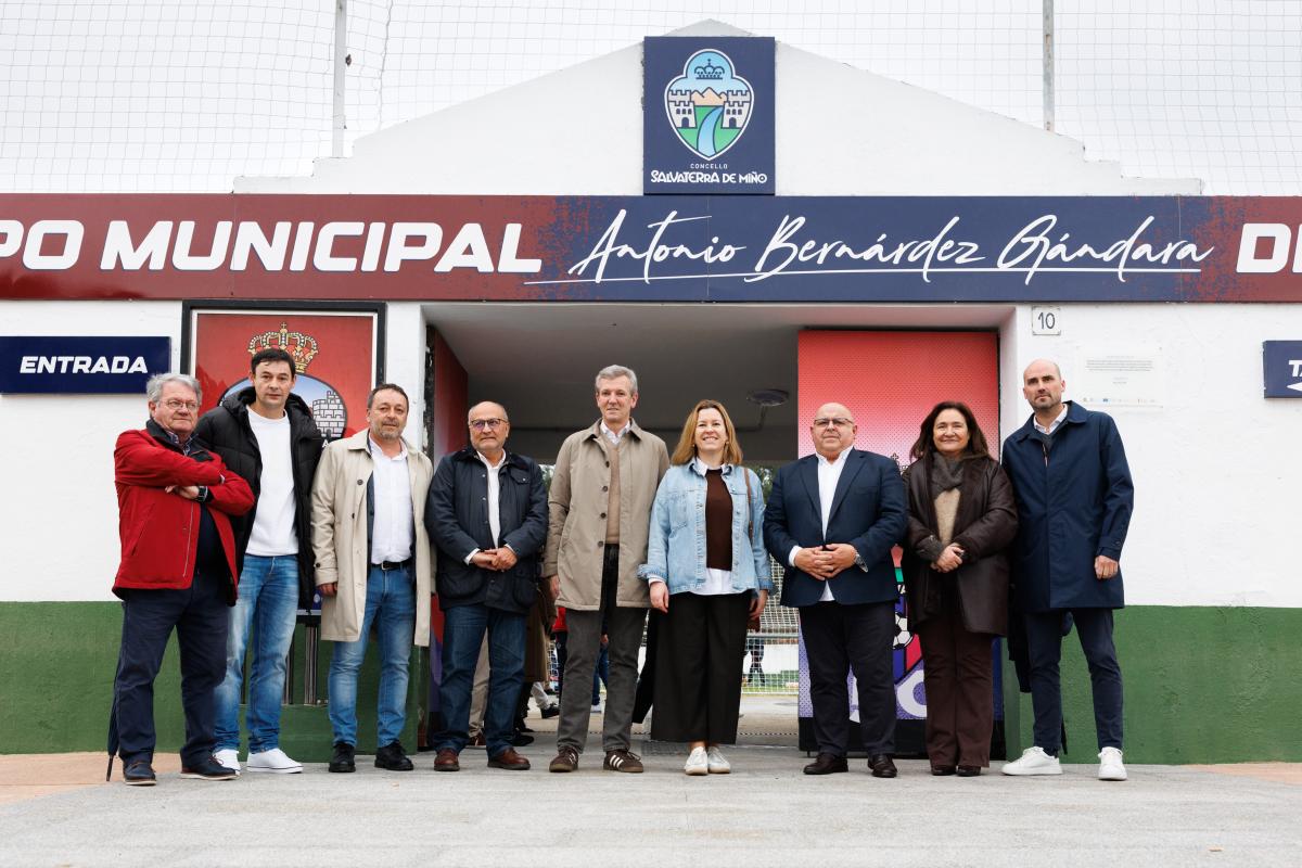 O presidente da Xunta de Galicia, Alfonso Rueda, destacou hoxe a reforma do campo municipal de fútbol Antonio Bernárdez Gándara de Salvaterra de Miño como exemplo de colaboración entre administracións. Así o sinalou esta tarde tras visitar as instalacións.