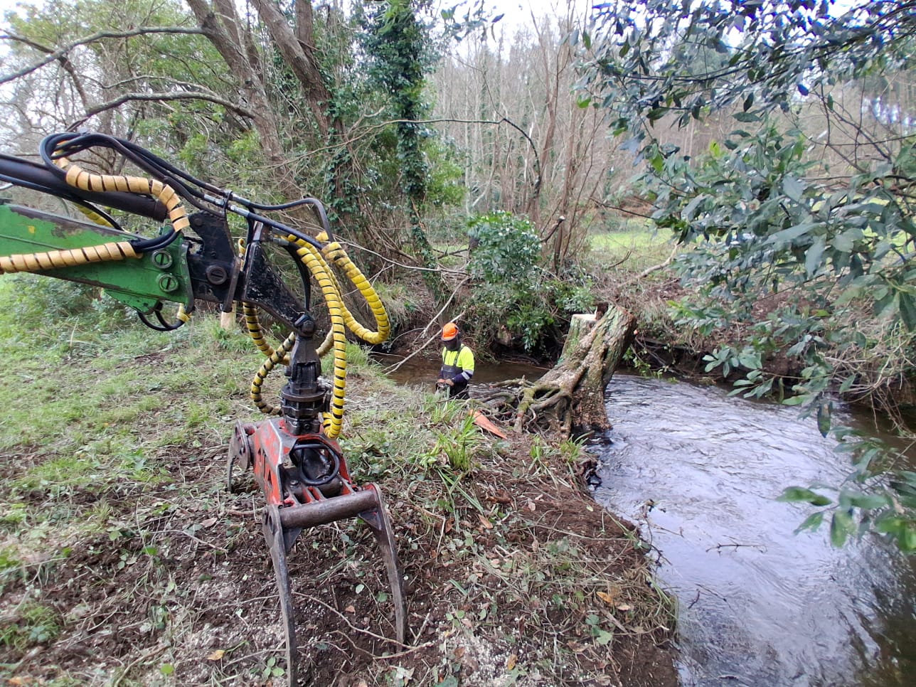 Las tareas que realiza Augas de Galicia se prolongarán durante alrededor de 17 jornadas e incluyen la retirada de árboles caídos de los canales fluviales para evitar atascos