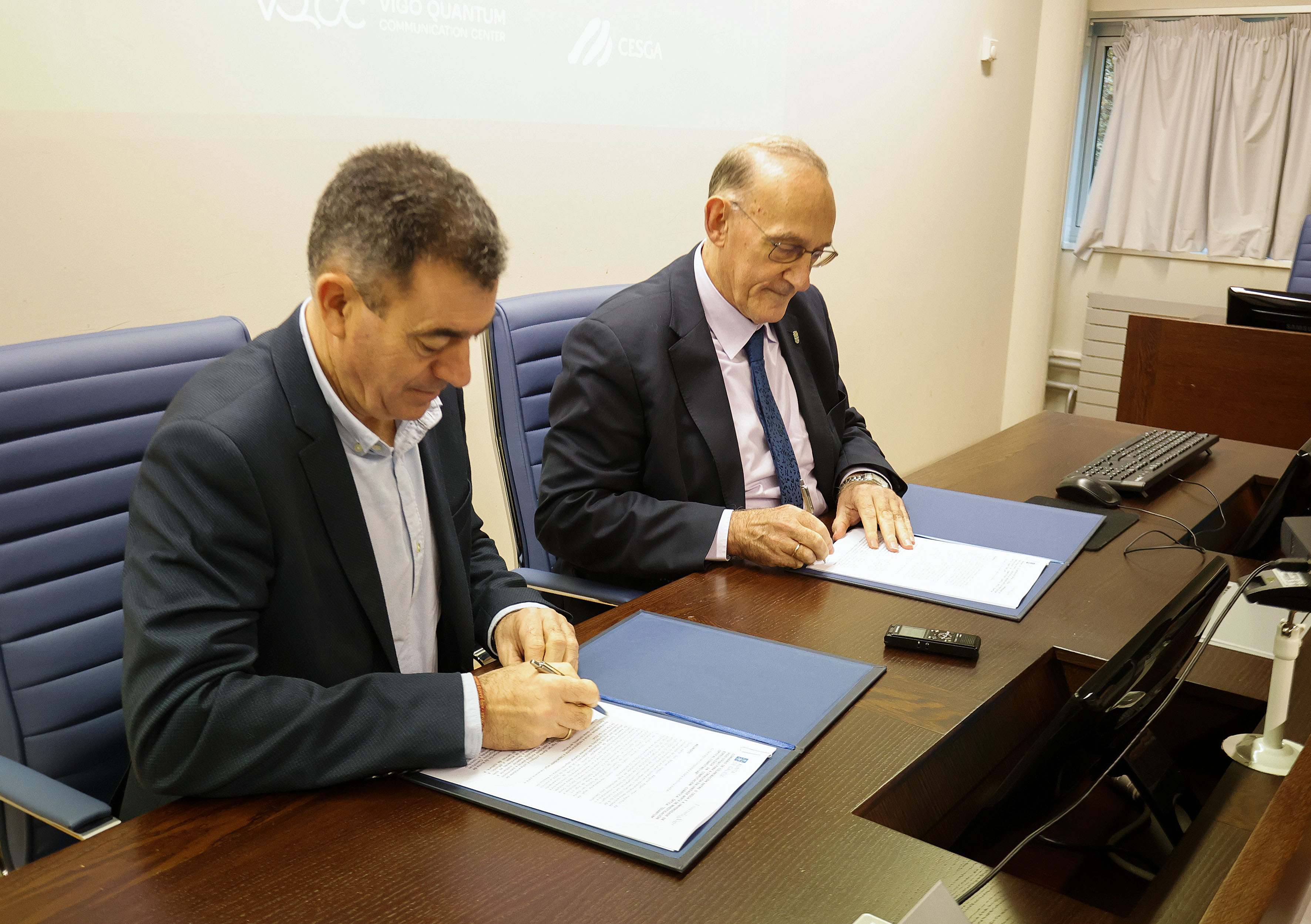 O conselleiro de Educación, Ciencia, Universidades e FP, Román Rodríguez, e o reitor da Universidade de Vigo, Manuel Reigosa, firmaron hoxe un acordo entre o CESGA (Centro de Supercomputación de Galicia) e o AtlanTTic (Centro de investigación en Tecnoloxías de Telecomunicación), para crear un laboratorio compartido especializado en computación cuántica óptica, que contará cun investimento de 2,4 M€. Neste sentido, Román Rodríguez definiu a colaboración como “un acontecemento relevante que fai posible que a nosa I+G+i se dote desta infraestrutura grazas ao traballo de dous centros de referencia nos seus respectivos campos”.