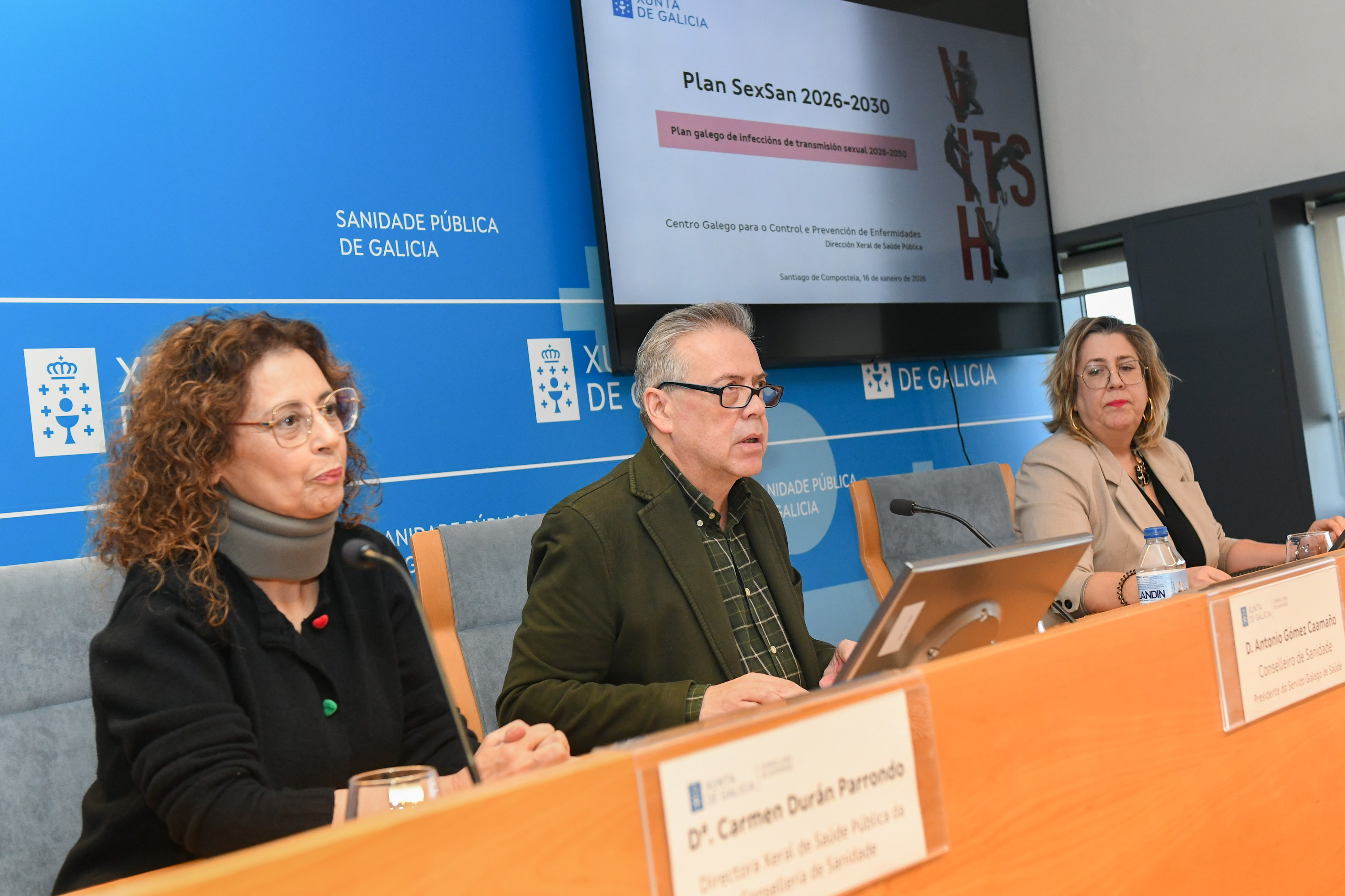 O conselleiro de Sanidade, xunto coa directora xeral de Saúde Pública e a directora do Centro galego para o control e prevención de enfermidades, presentou o Plan galego de infeccións de transmisión sexual 2026-2030