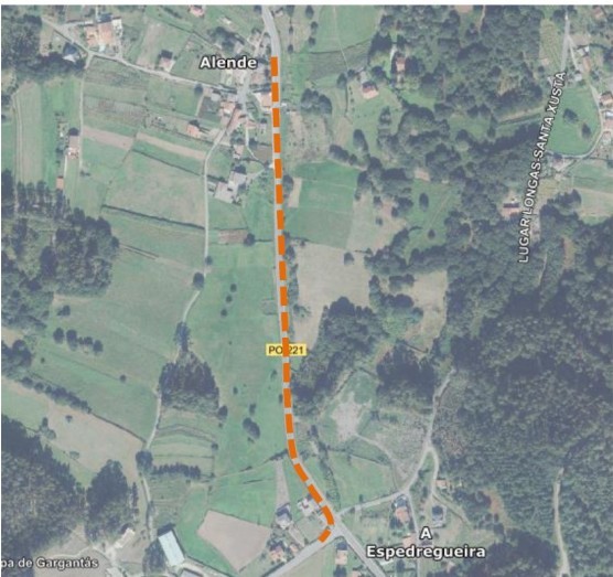 A intervención céntrase na execución dunha senda mixta na PO-221, que permita realizar ao longo da vía, unha circulación confortable para os peóns e ciclistas desde o núcleo de Alende (punto quilométrico 6+260) ata a intersección coa EP-0018 (Xeve – Amil – A Espedregueira), no núcleo da Espedregueira (quilómetro 6+800).