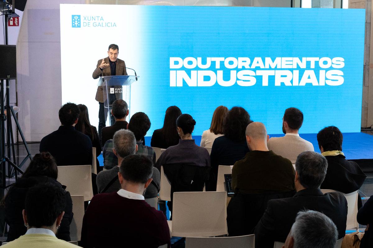 La Xunta de Galicia celebró hoy el acto de bienvenida a la nueva promoción del programa Doctorados Industriales, que llega a su quinta edición con un total de 76 investigadores apoyados con una inversión de más de 10 M€ desde su nacimiento. "El objetivo es que realicen su tesis doctoral en empresas y centros tecnológicos gallegos", señaló el conselleiro de Educación, Ciencia, Universidades e FP, Román Rodríguez, durante la clausura de este encuentro.