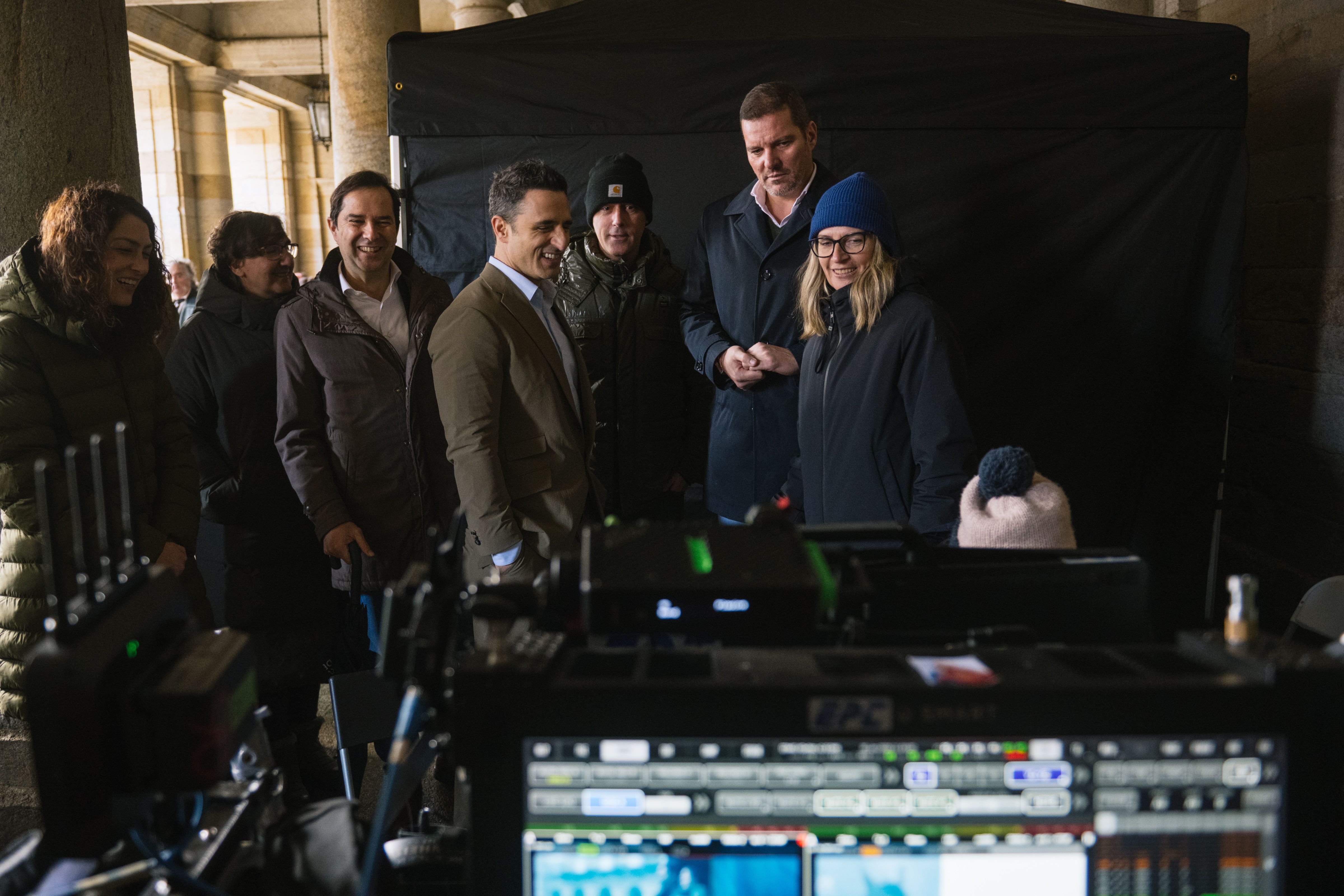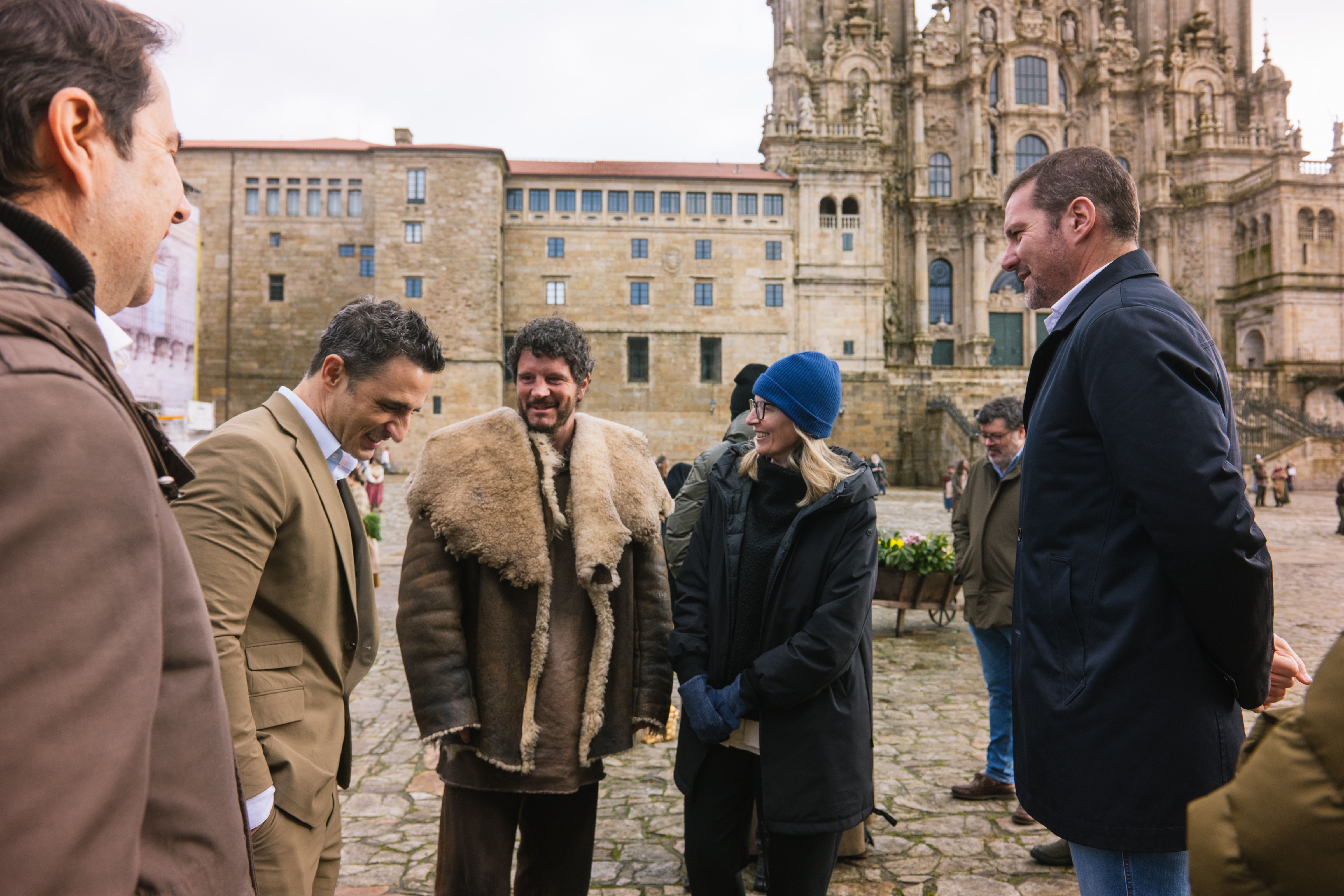 O conselleiro de Cultura, Lingua e Xuventude, José López Campos, asistiu esta semana na compostelá praza do Obradoiro a unha das sesións de rodaxe de Lobo, miniserie de Vaca Films para Netflix que conta cunha das axudas da Xunta de Galicia para a atracción de rodaxes audiovisuais á nosa Comunidade. En concreto, o proxecto dispón dunha subvención de 300.000 euros a través da convocatoria de 2025 deste fondo, cofinanciado pola Consellería de Cultura, Lingua e Xuventude e a Unión Europea no marco do programa Galicia Feder 2021-2027.