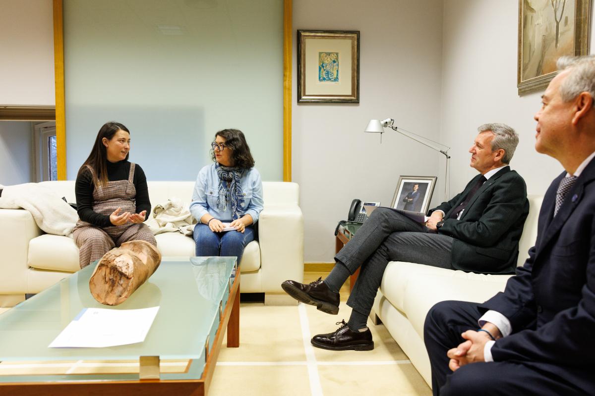 O presidente da Xunta, Alfonso Rueda, mantivo esta semana un encontro con Carmen López, directora sociosanitaria da Federación Galega de Enfermidades Raras e Crónicas (Fegerec), e Rocío Varela, membro da xunta directiva, na que puido coñecer de primeira man as inquedanzas e propostas desta entidade, que conta con máis de 700 socios e máis de 4.000 beneficiarios.