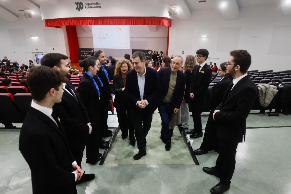 O conselleiro de Educación, Ciencia, Universidades e Formación Profesional, Román Rodríguez, asistiu hoxe á final da XII edición do certame de sumillería organizado polo Centro Integrado de FP Carlos Oroza de Pontevedra. O campionato, que desde o pasado ano se celebra baixo a denominación SOMM Talent FP, consolidouse como unha cita de referencia no calendario das escolas de hostalería, reunindo nesta edición a 18 centros educativos de Galicia, do resto de España e de Portugal. A competición recoñece o talento dos mellores estudantes de sumillería e pon en valor a excelencia da Formación Profesional no ámbito da hostalería.