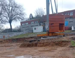 Xa se instalaron os contedores necesarios, segundo o plan previsto, e nos vindeiros días comezarán os traballos da estrutura do edificio e instalarase xa unha parte da súa rede de saneamento.